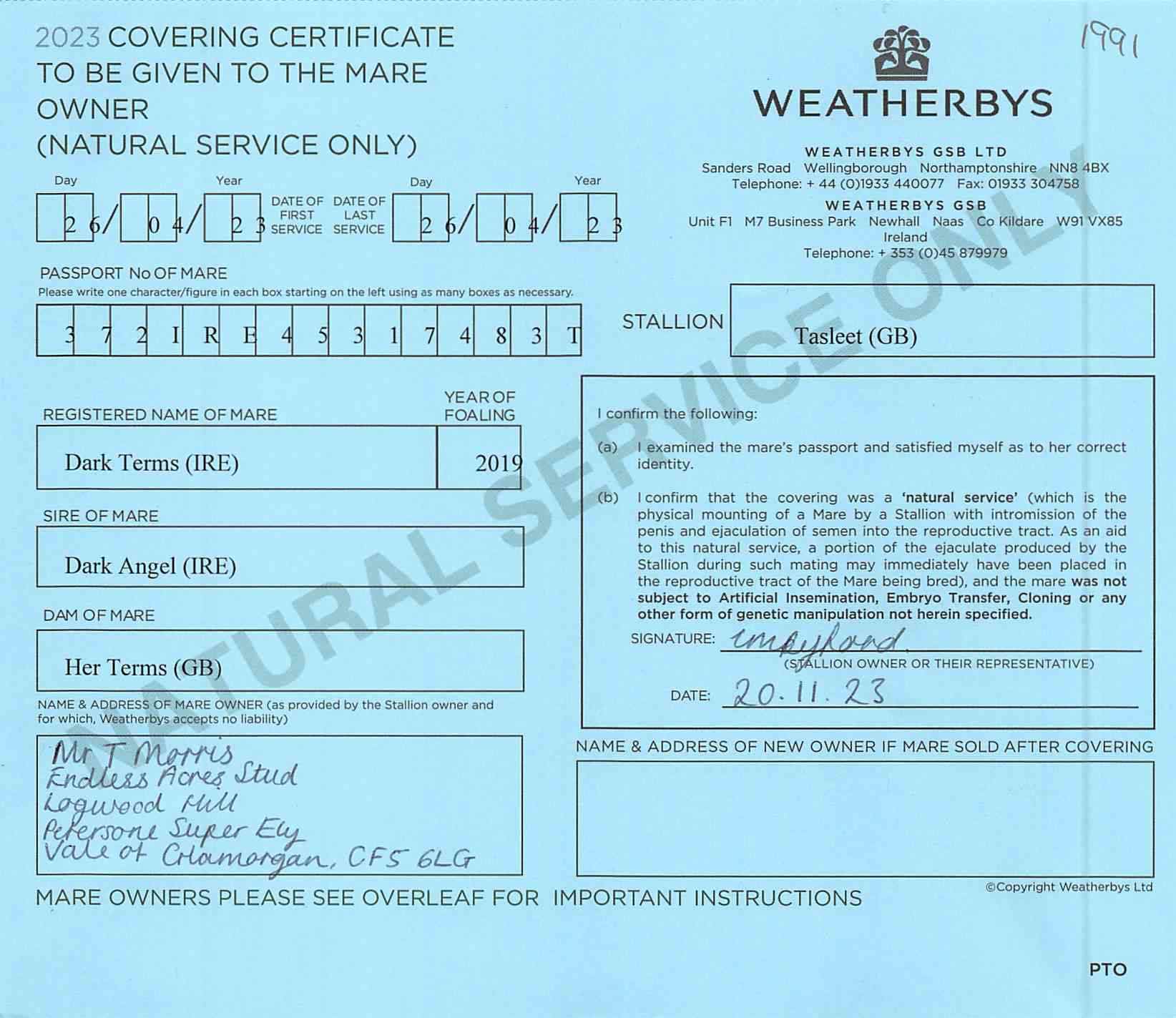 Contact: Tony ✆ 07880543758 ✉ tony@endlessacresstud.co.uk