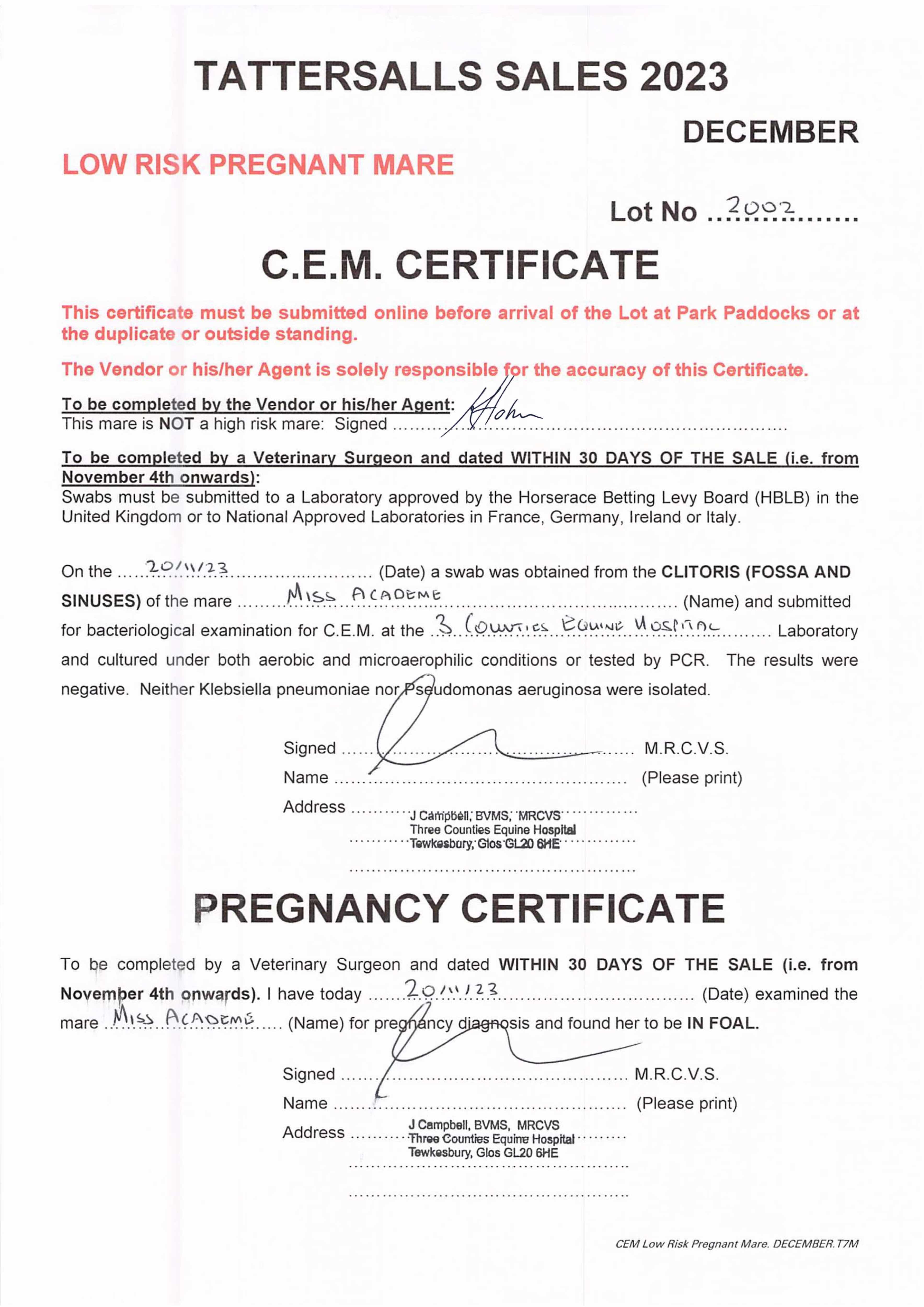 Consignor: Tweenhills Farm & Stud