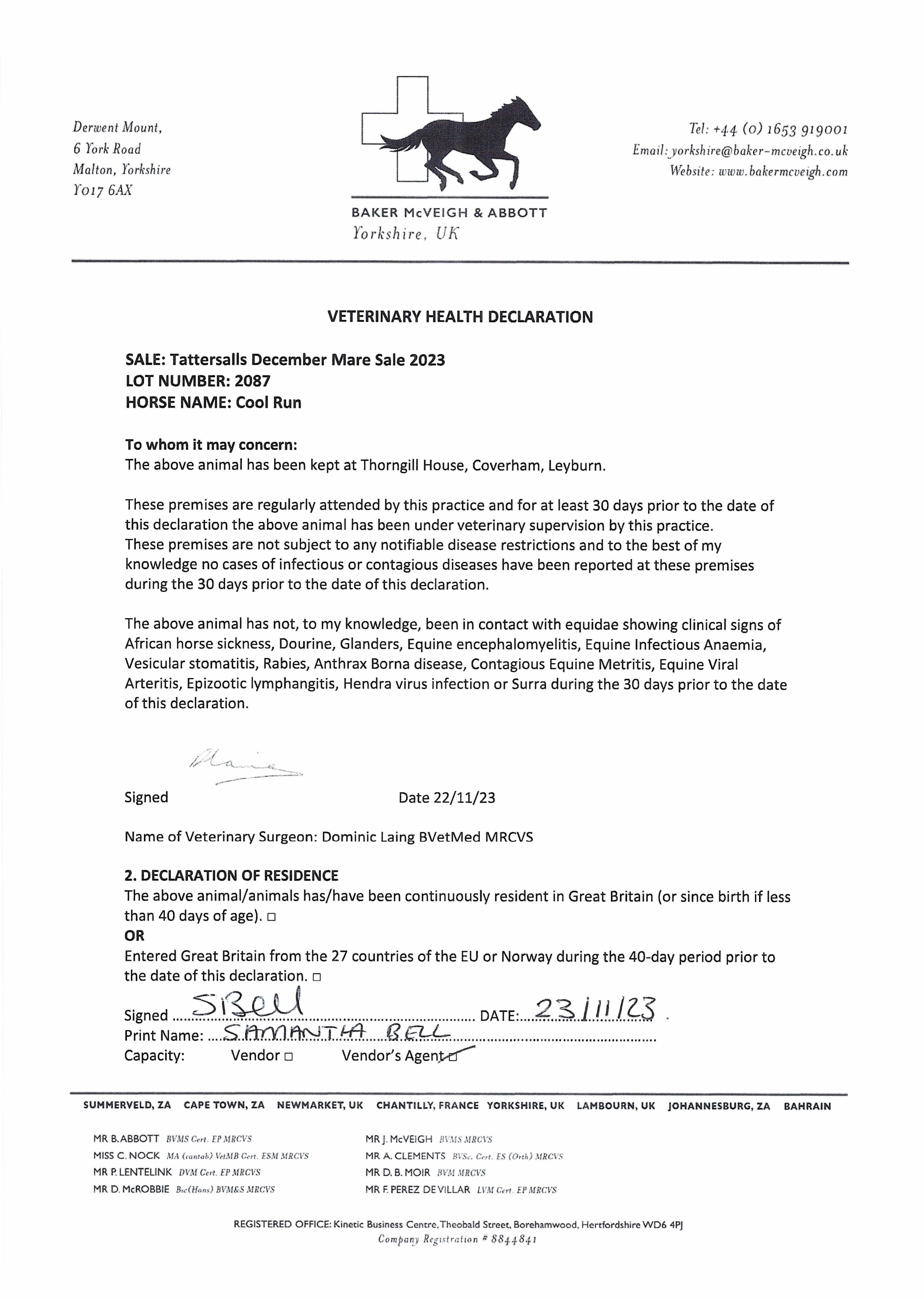 Consignor: Tweenhills Farm & Stud