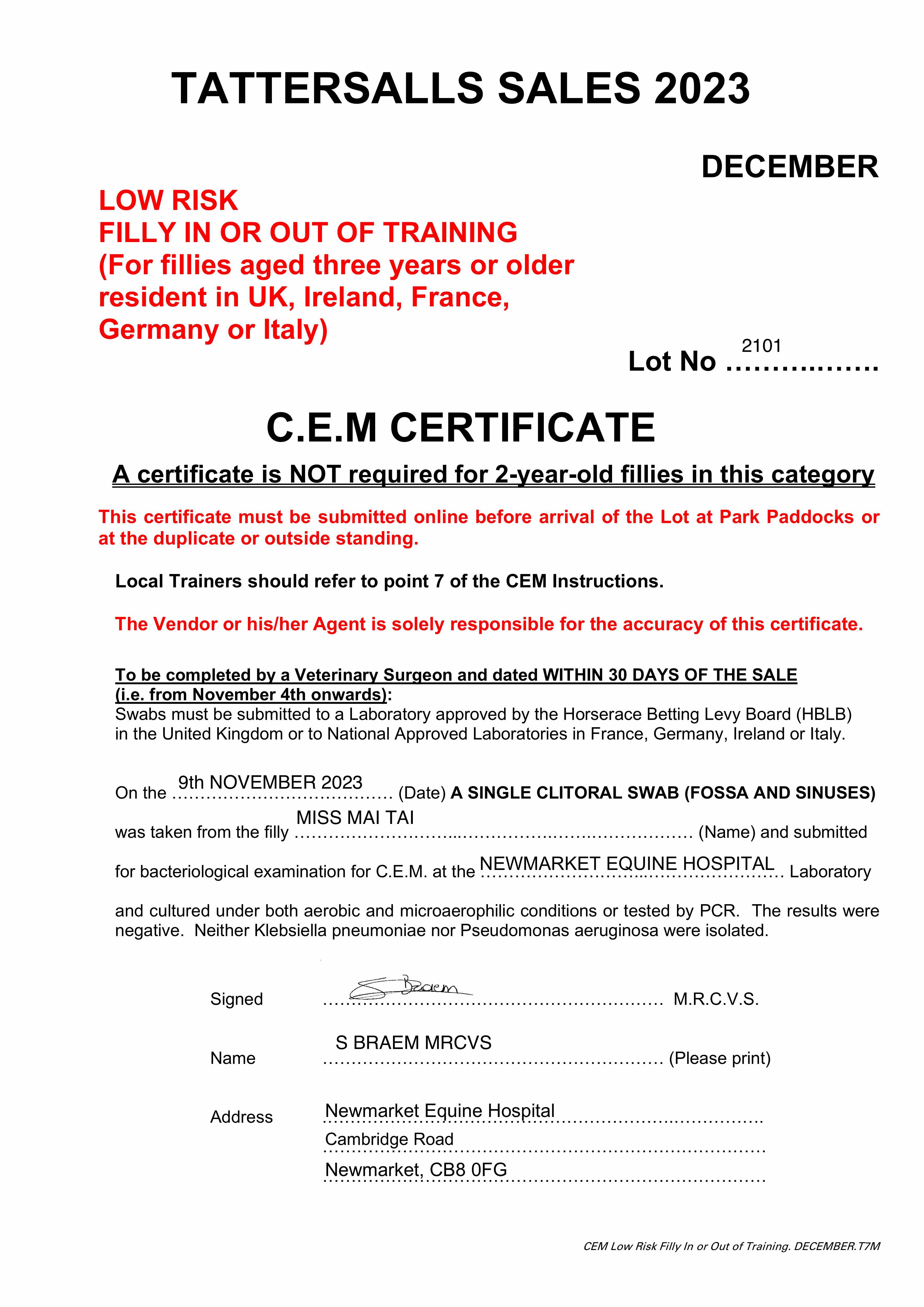 December Mare Sale 2023 lot 2141 Miss Woo Woo (GB) (F. by Coach House (IRE)), Robert Cowell Racing=>Sam Hoskins 5,500 gns