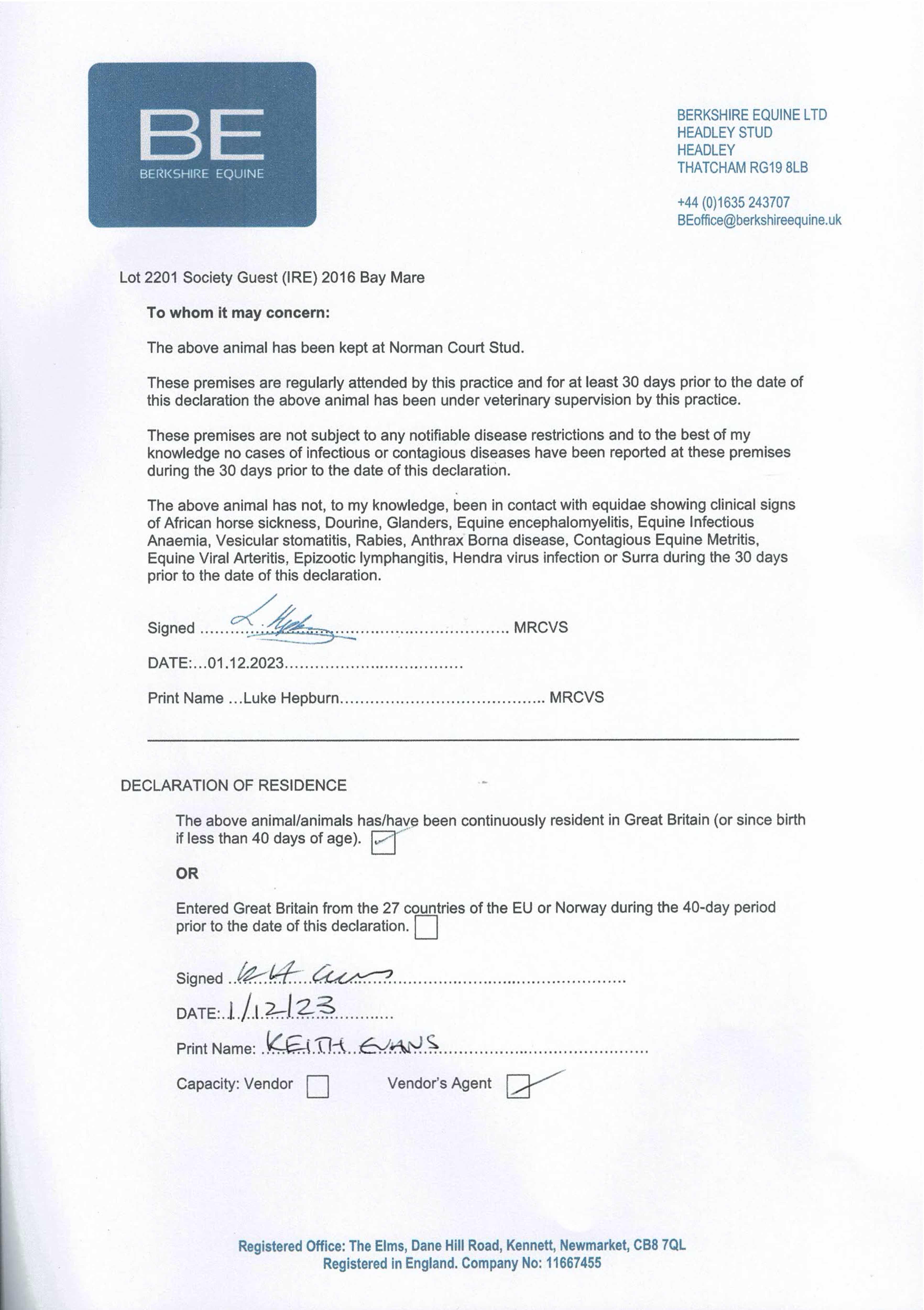 December Foal Sale 2023 lot 1258 F. by Bungle Inthejungle (GB) 2023, Norman Court Stud=>George Casey 1,000 gns