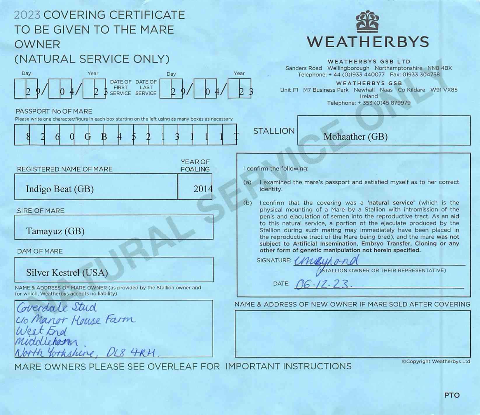 December Mare Sale 2020 lot 1358 Silver Swift (GB) (M. by Dutch Art (GB)), Highclere Stud=>Horse Park Stud 4,000 gns