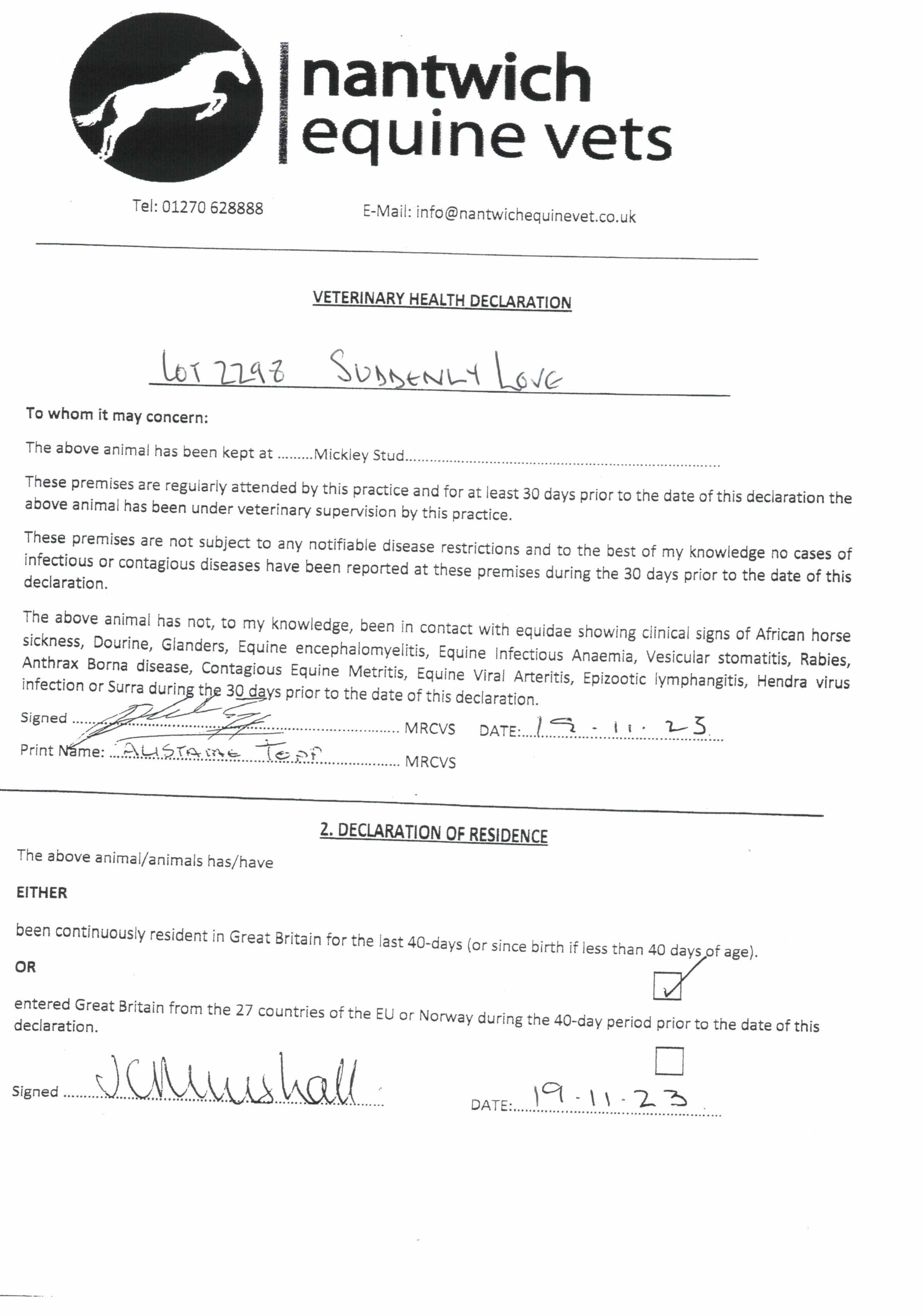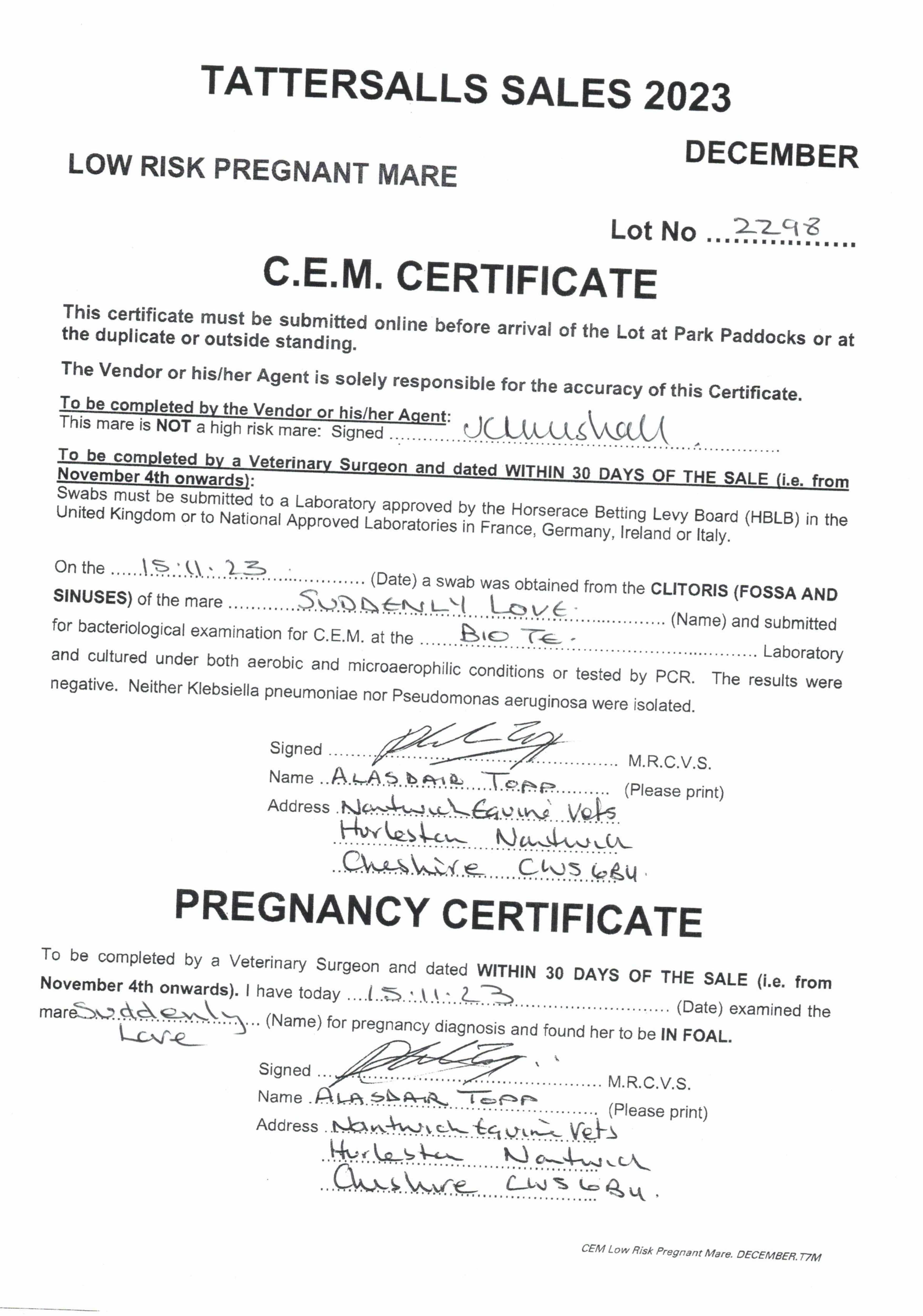 December Foal Sale 2023 lot 1163 F. by Ubettabelieveit (IRE) 2023, Mickley Stud Ltd. (Agent)=>Kelly Equine 3,000 gns