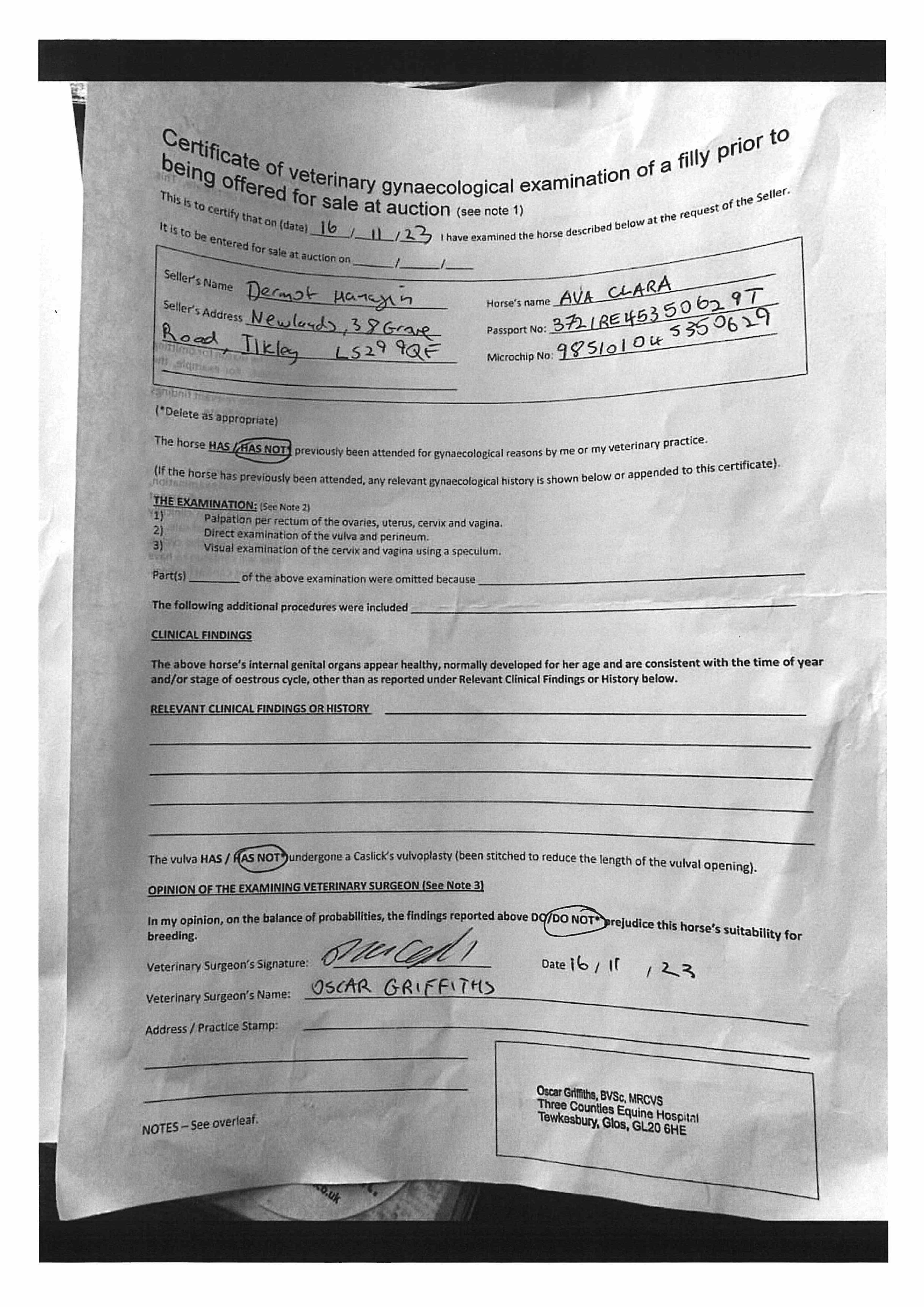 Online Sale - 18th January 2024 lot 65 Tralee Girl (IRE) (F. by Camelot (GB)), Jason Maguire=>Vendor 1,000 gns