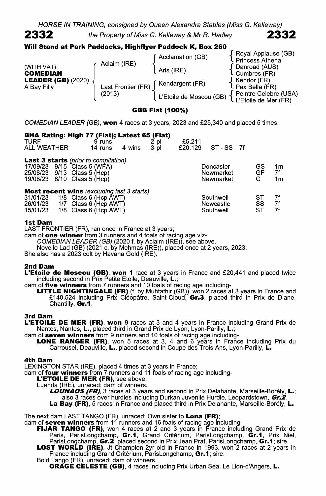 Online Sale - 19th January 2023 lot 45, Queen Alexandra Stables (Miss G. Kelleway)=>Lot Not Sold 10,000 gns