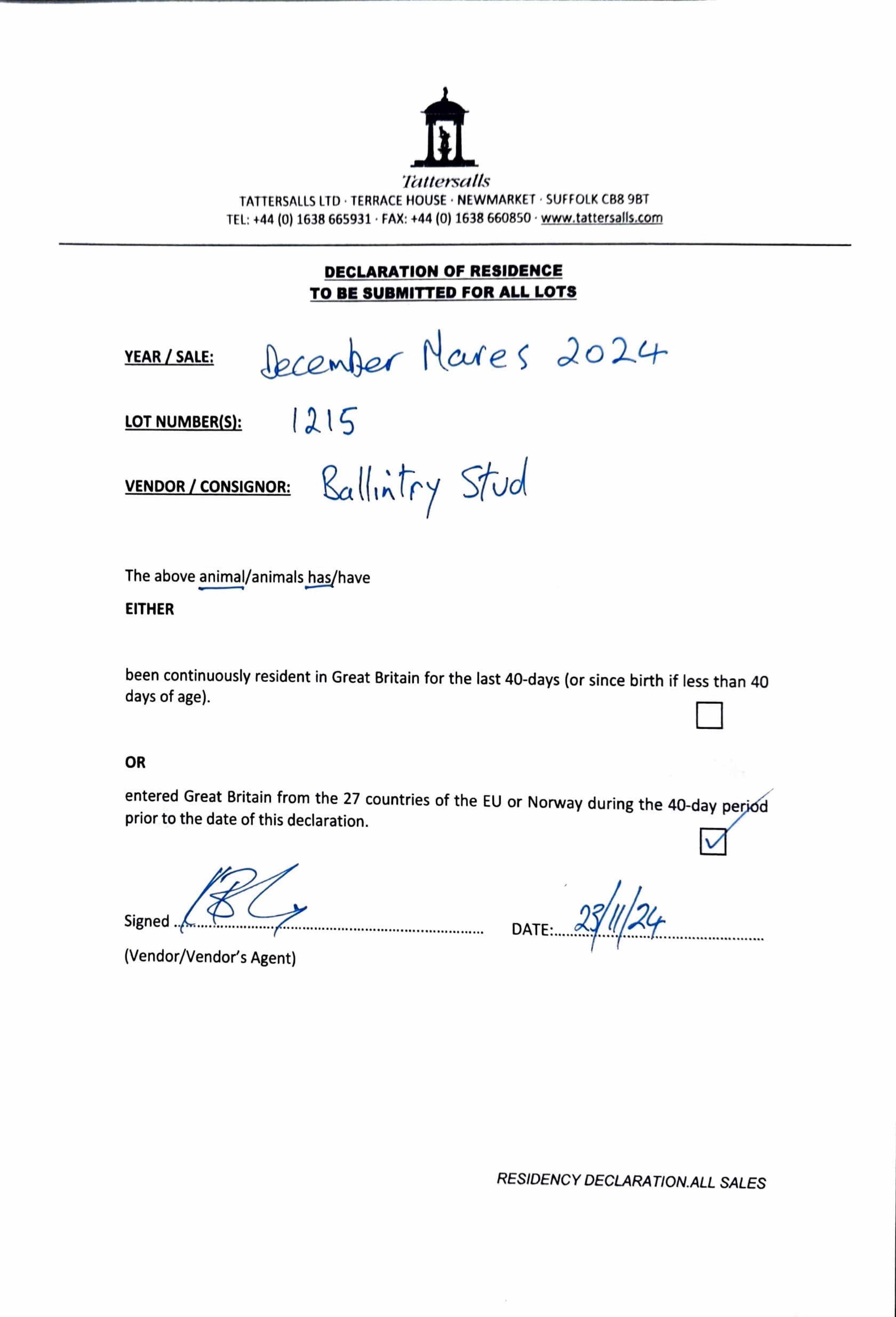 December Mare Sale 2024 lot 1453 Raknah (IRE) (F. by Blue Point (IRE)), Ballintry Stud, Ireland=>Yoshihisa Ozasa 350,000 gns