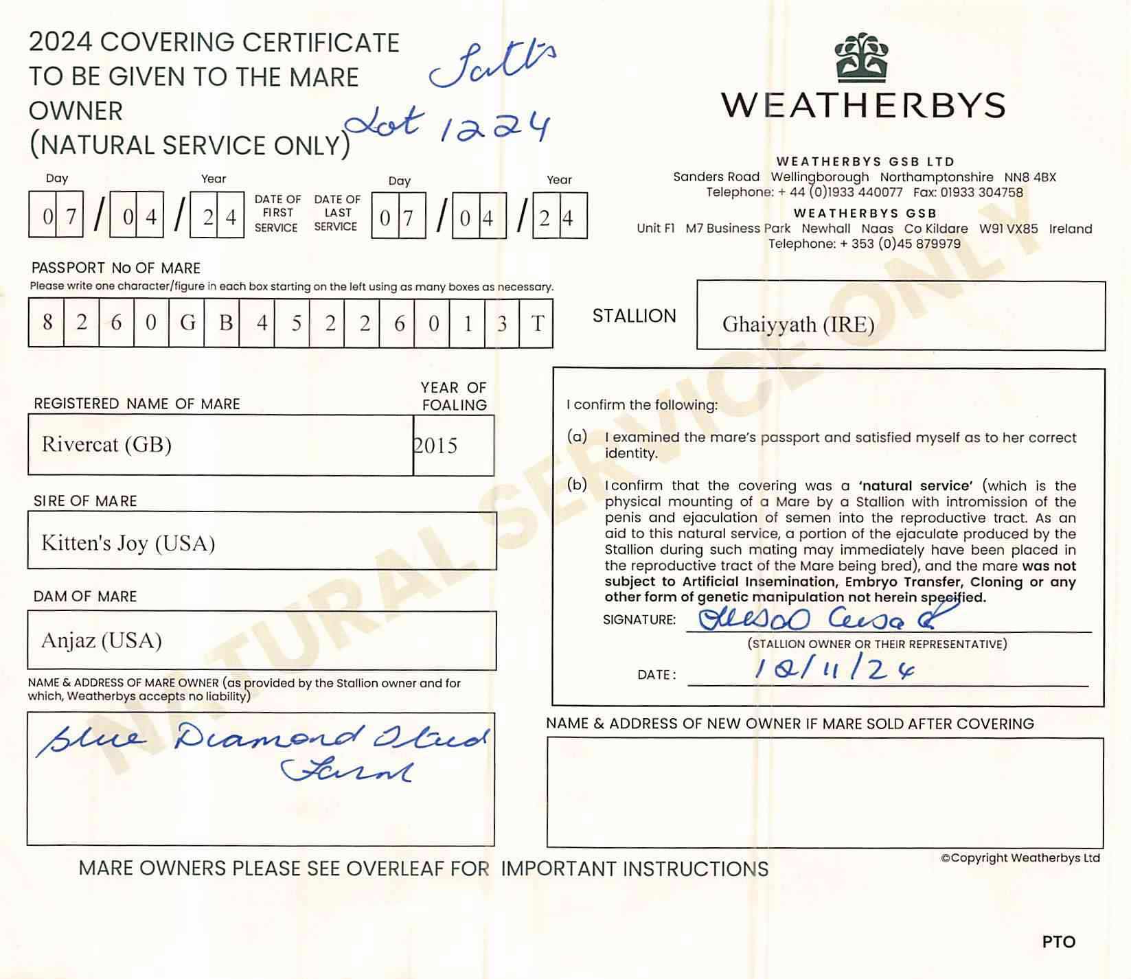 Consignor: Blue Diamond Stud Farm (UK) Ltd.