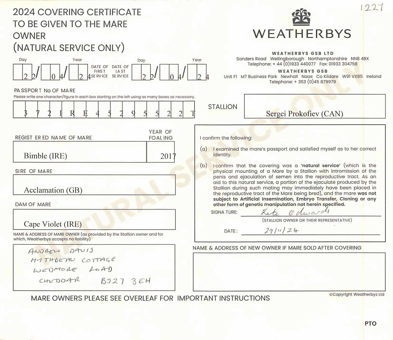 Consignor: Salcey Forest Stud