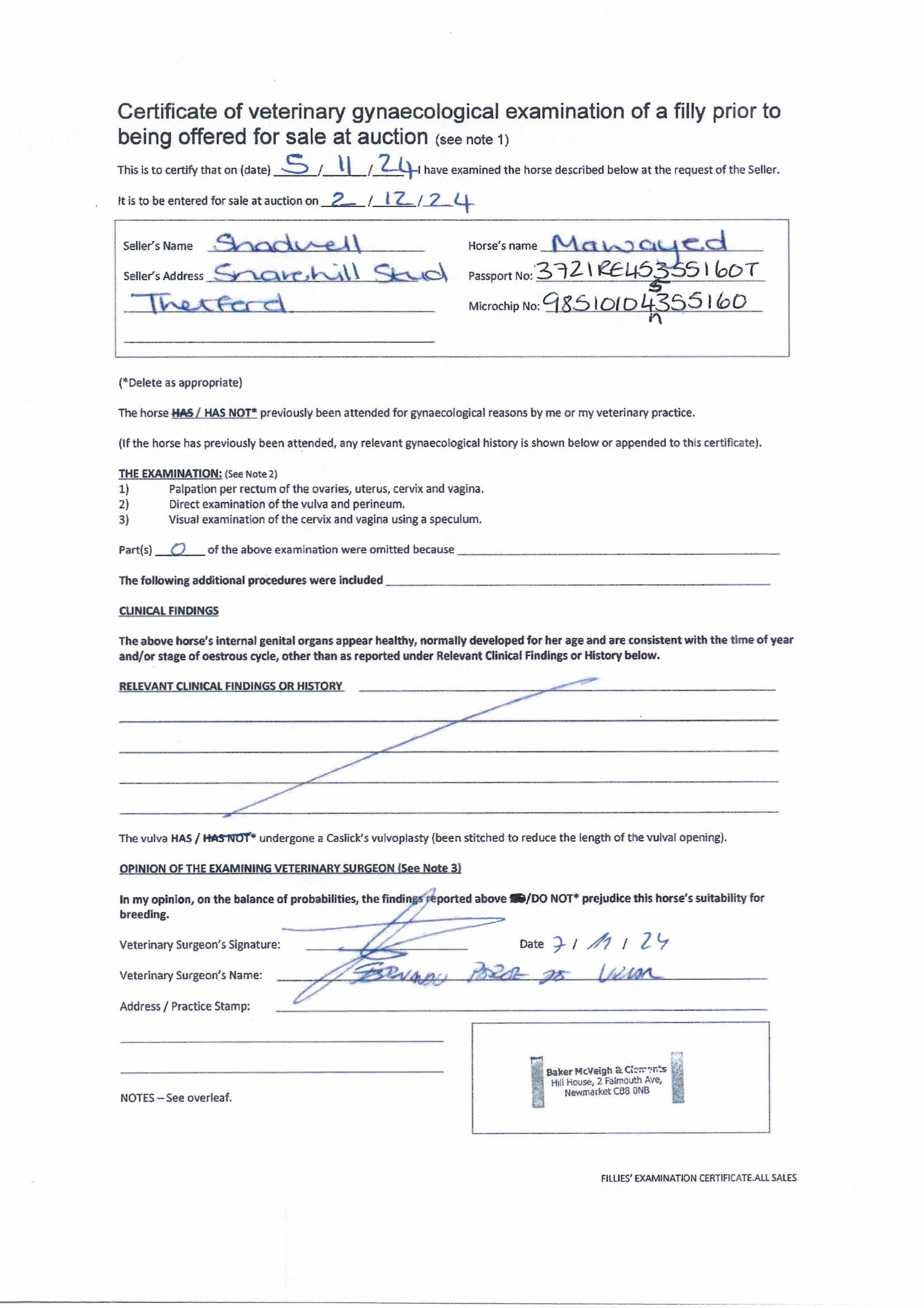 October Yearling Sale, Book 1 2025 lot 3 F. by Frankel (GB) 2024, Baroda Stud, Ireland=>Godolphin 400,000 gns