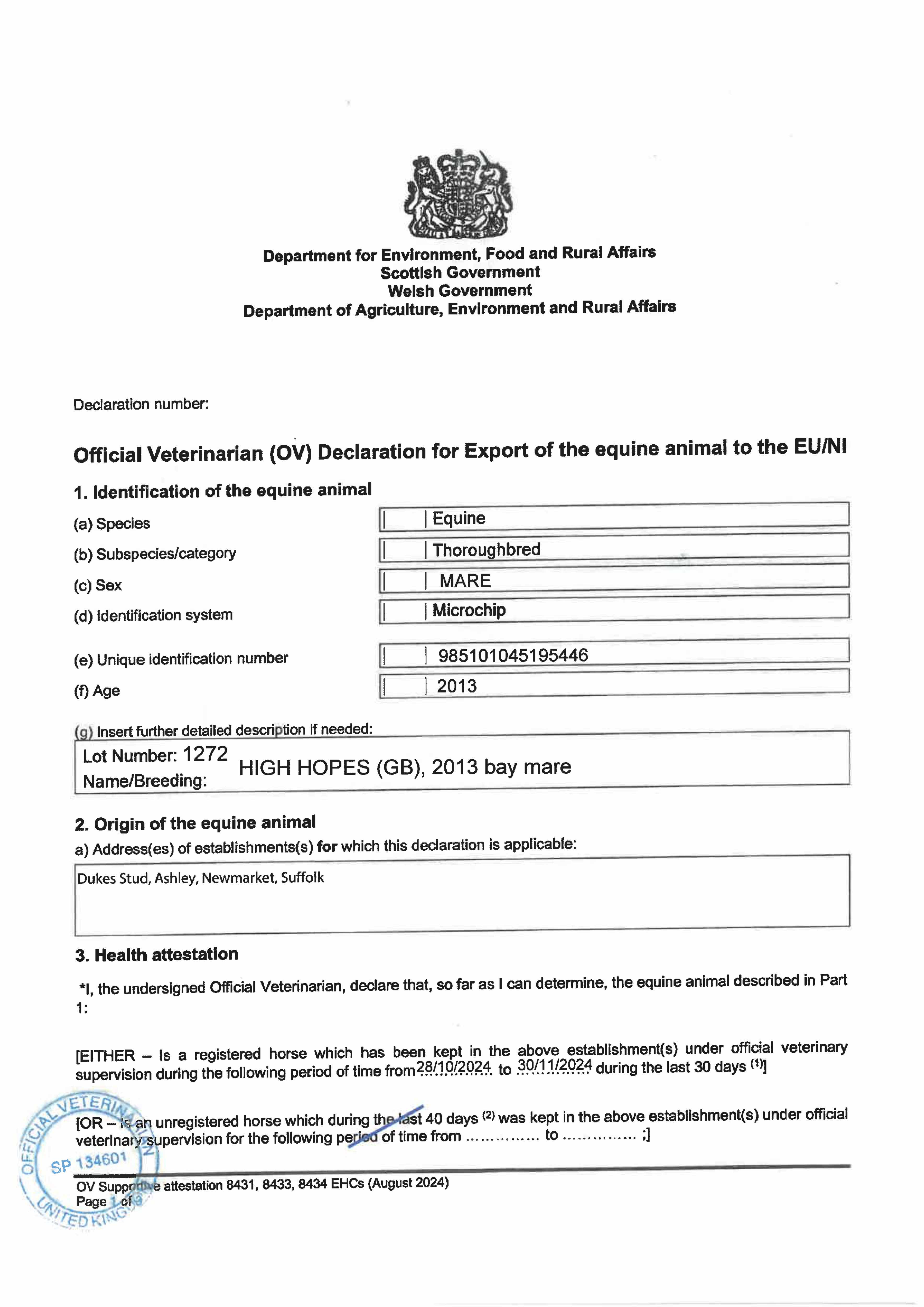 Autumn Horses In Training Sale 2024 lot 1513 Aim Straight (GB) (G. by Australia (GB)), Barton Sales=>J P Bloodstock 19,500 gns