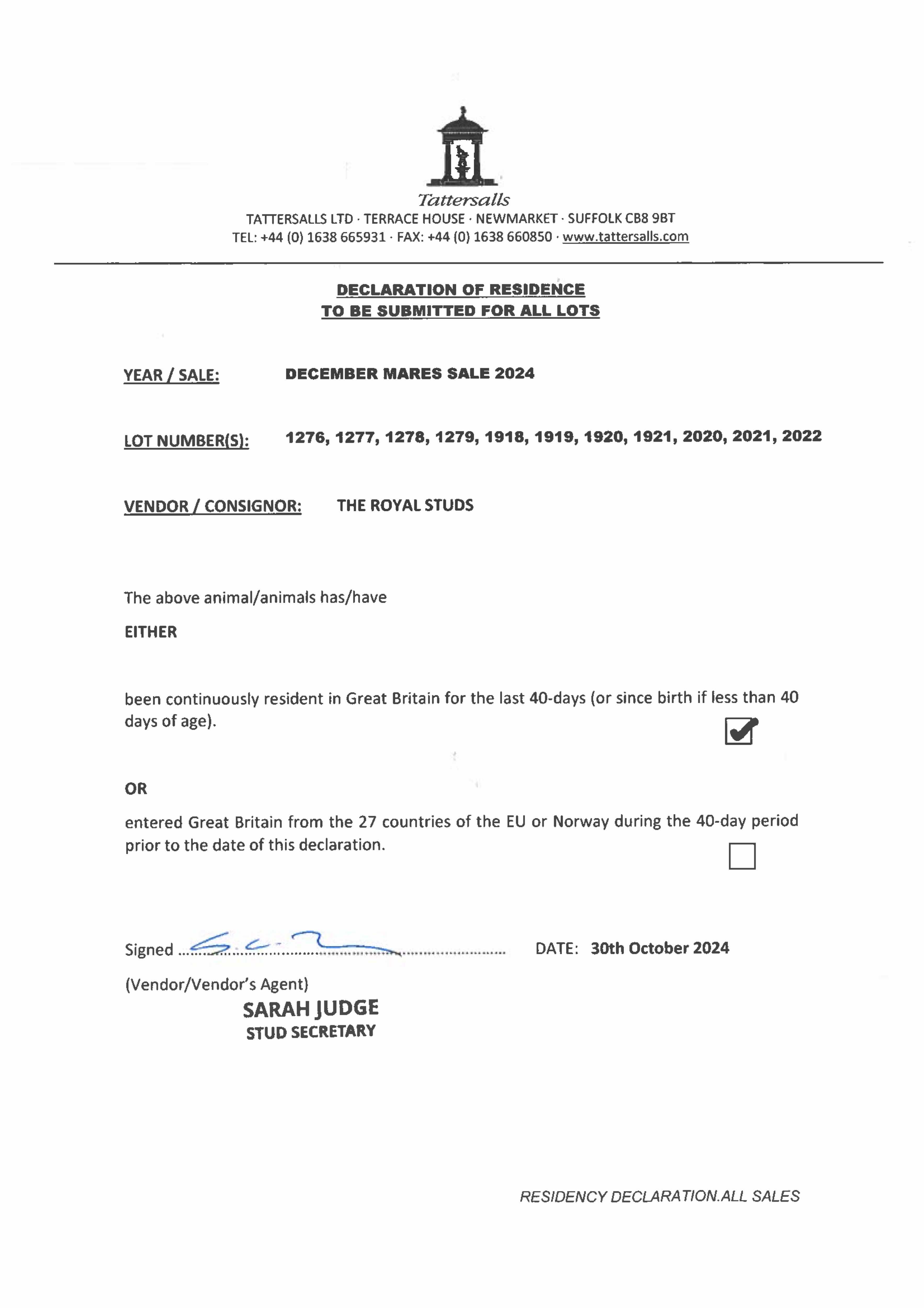 Online Sale - 21st November 2024 lot 156 With One Accord (GB) (M. by Acclamation (GB)), Irish National Stud, Ireland=>Alessandra Giudici 1,800 gns