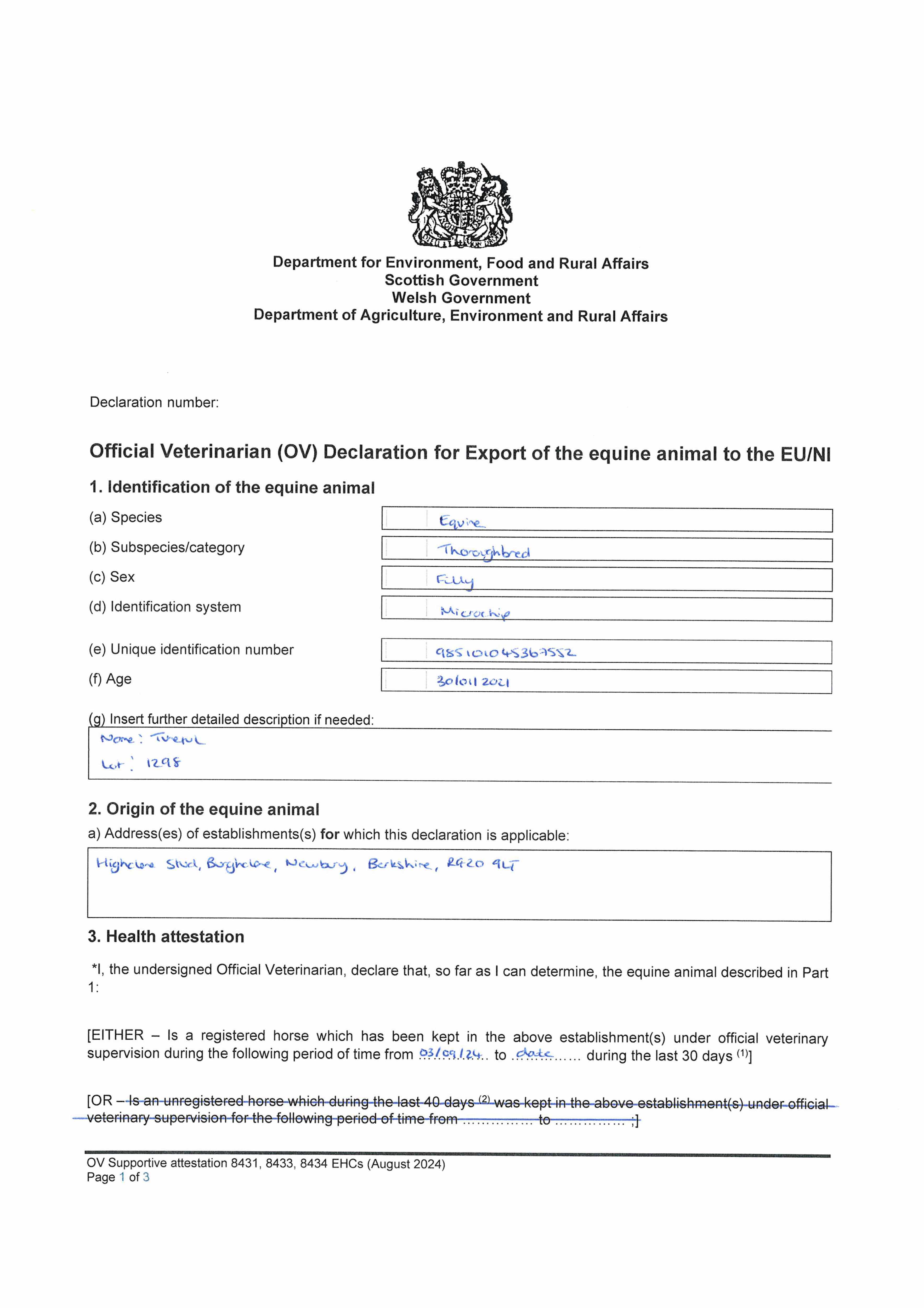 Consignor: Highclere Stud