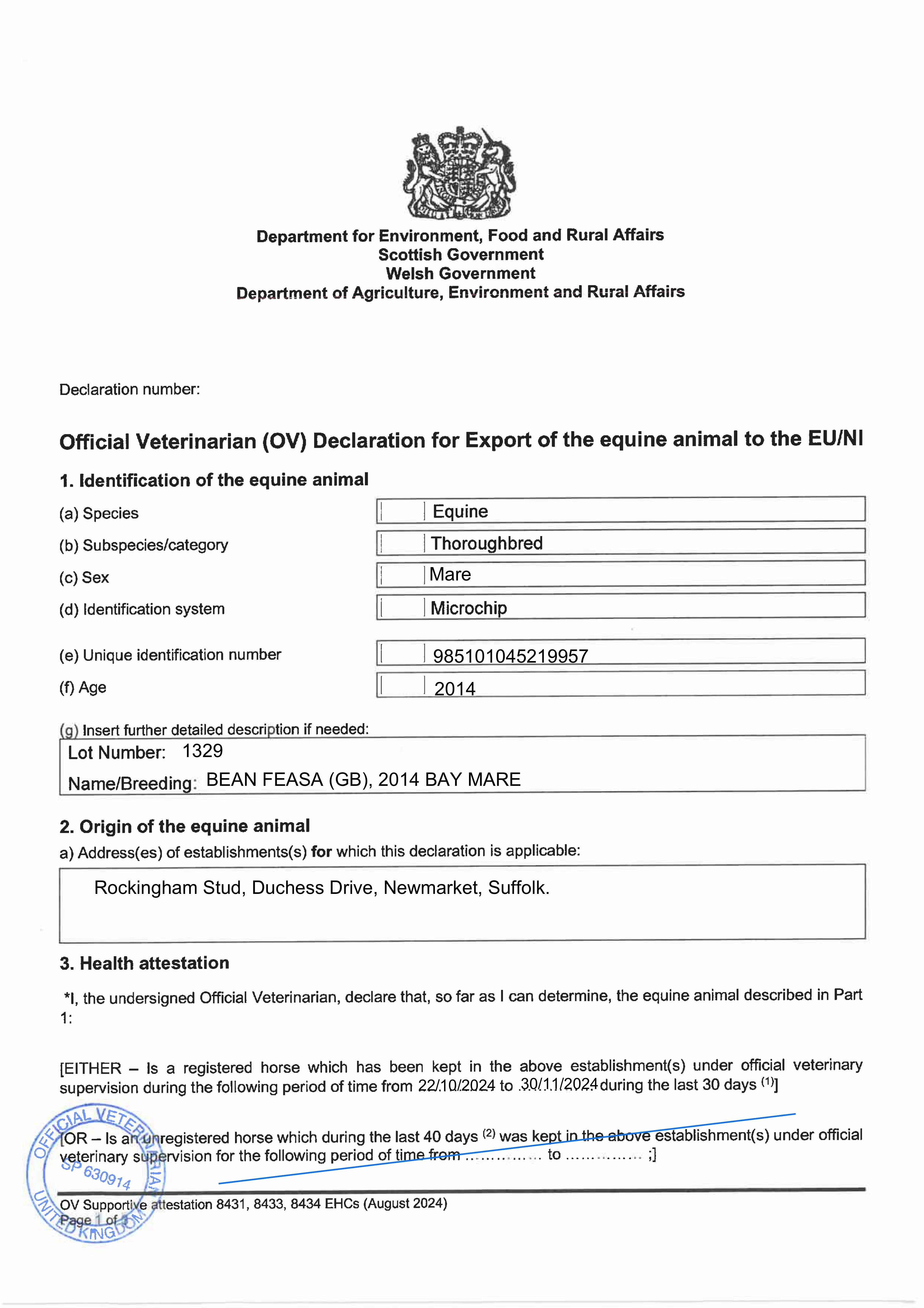 Autumn Horses In Training Sale 2024 lot 1246 Bewitch (GB) (F. by Masar (IRE)), Kingsley Park=>Lot Not Sold