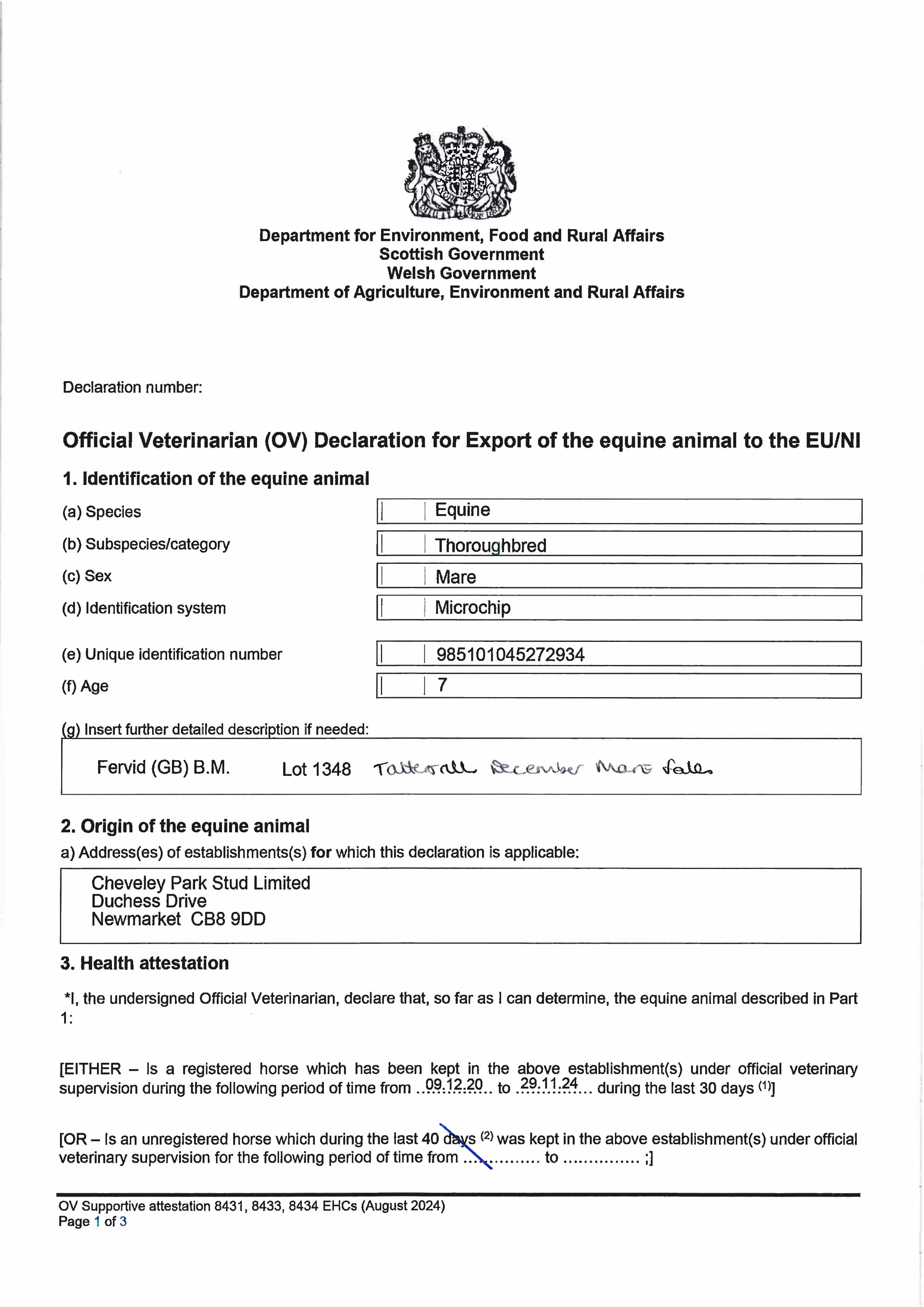 Consignor: Cheveley Park Stud Ltd.