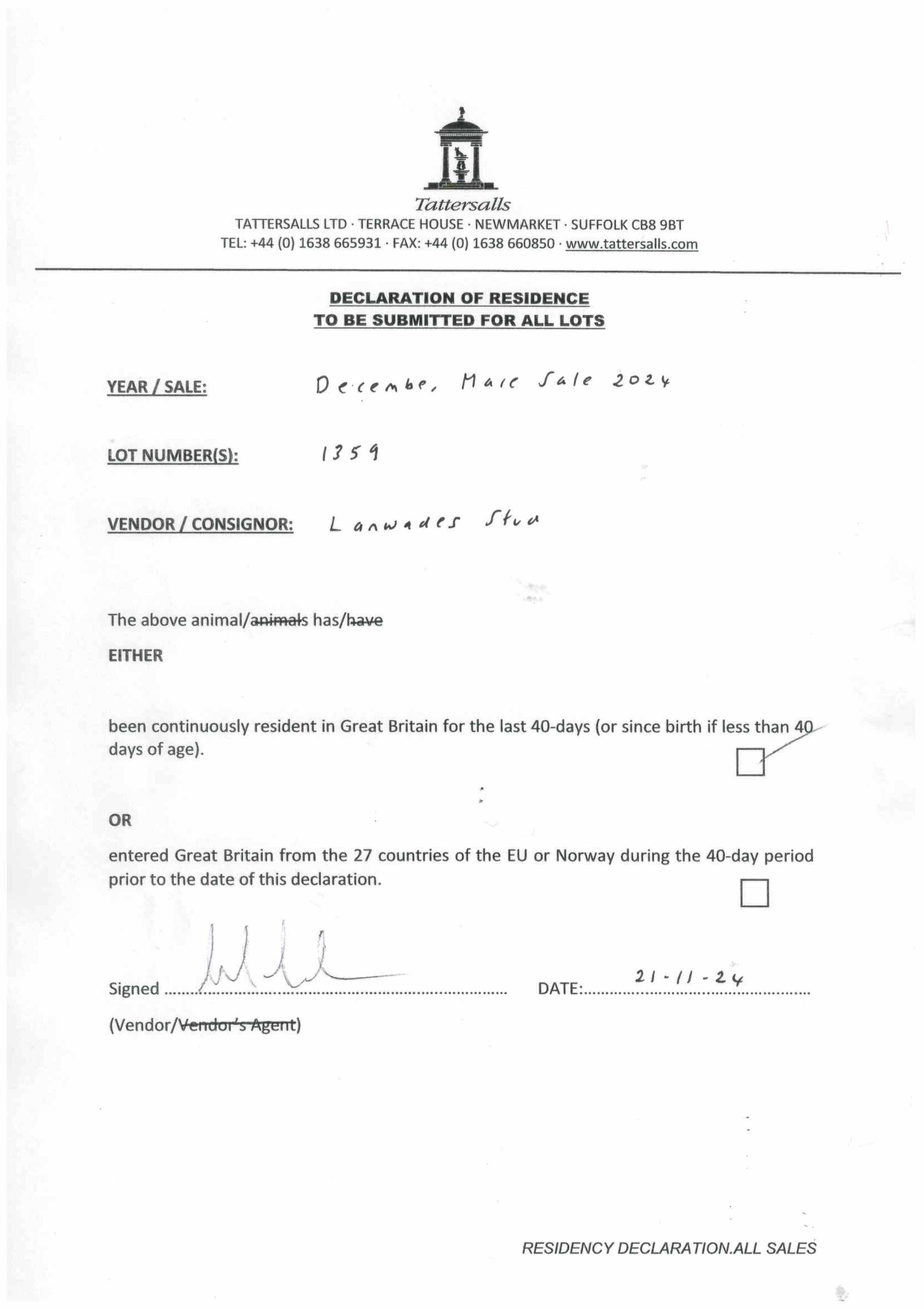 Consignor: Lanwades Stud