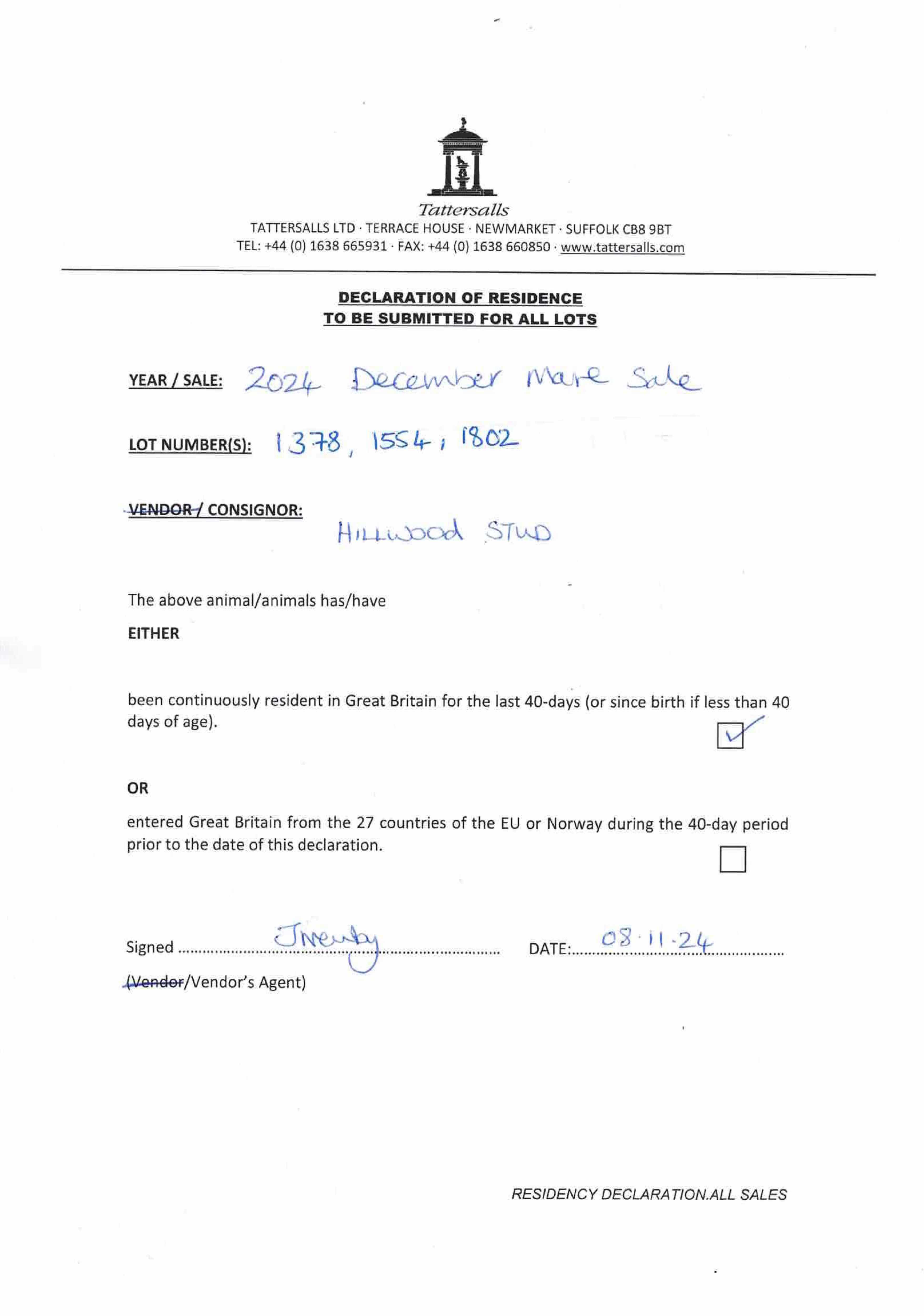 Consignor: Tweenhills Farm & Stud