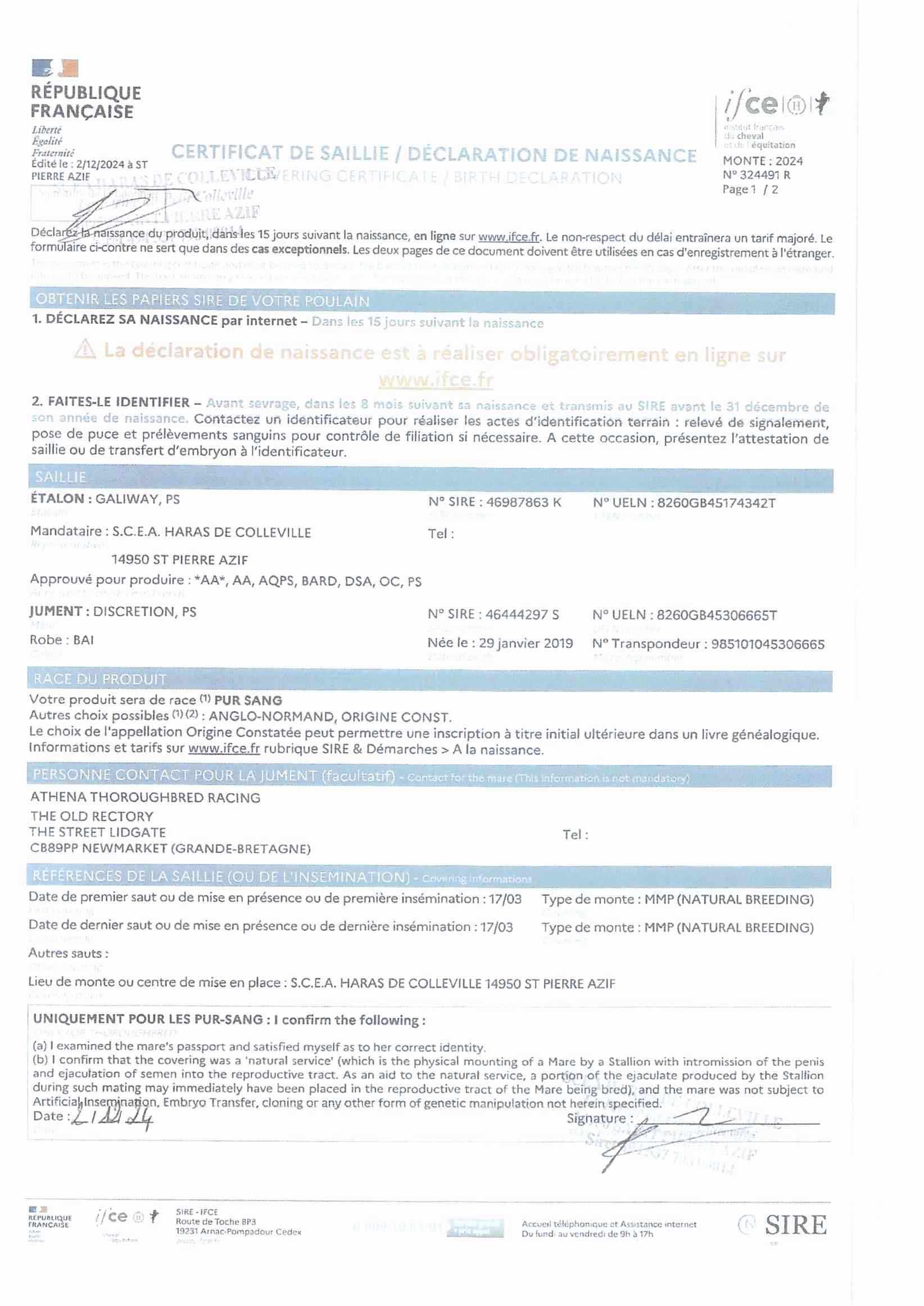 December Mare Sale 2020 lot 1816 Quick Waltz (GB) (F. by Australia (GB)), The Royal Studs=>Mickley Stud 800 gns