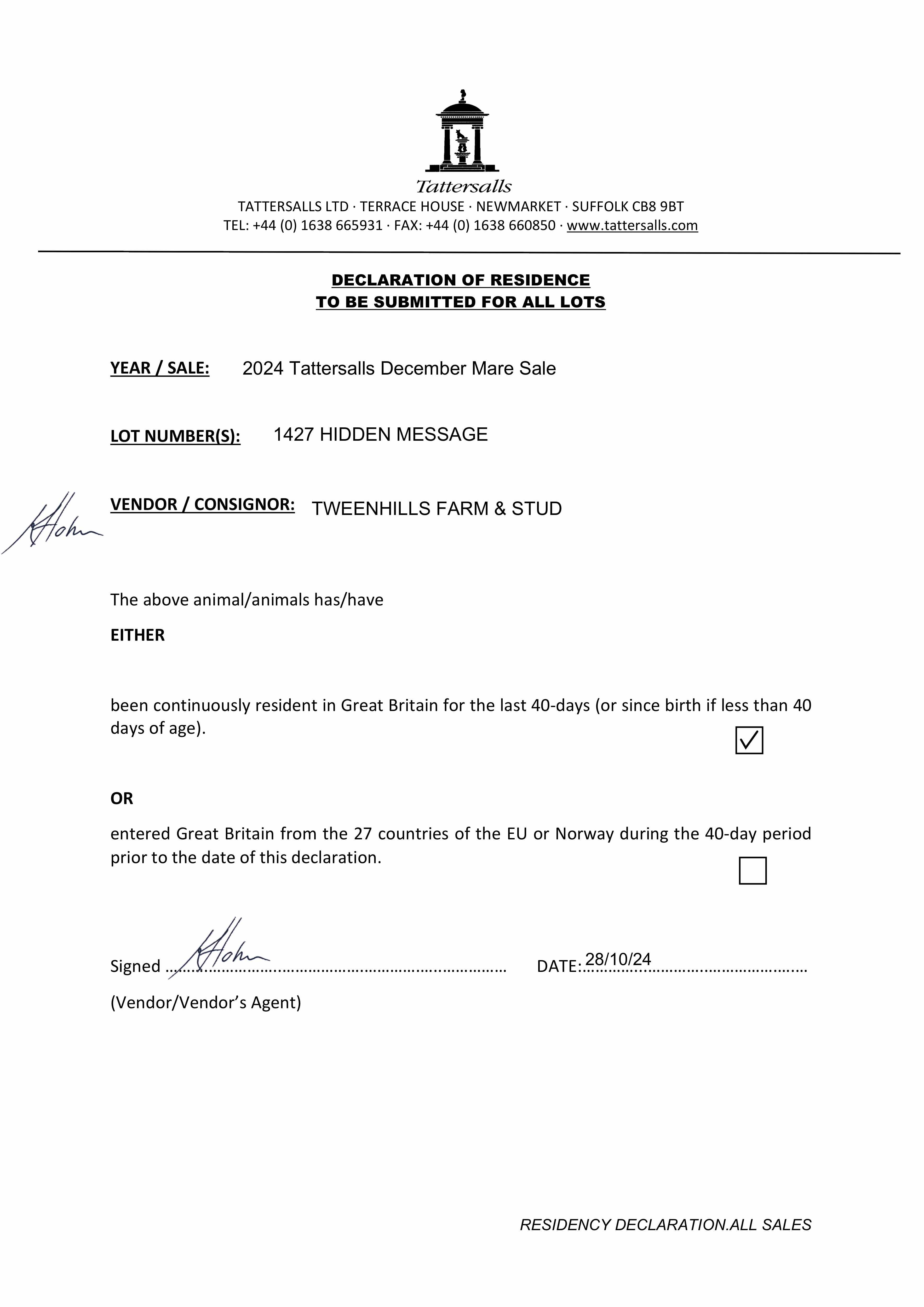 Autumn Horses In Training Sale 2021 lot 1224 Hyde Park Barracks (USA) (G. by Air Force Blue (USA)), Hamilton Stables (M. Wigham)=>Nasser Al-Mutairi 16,000 gns