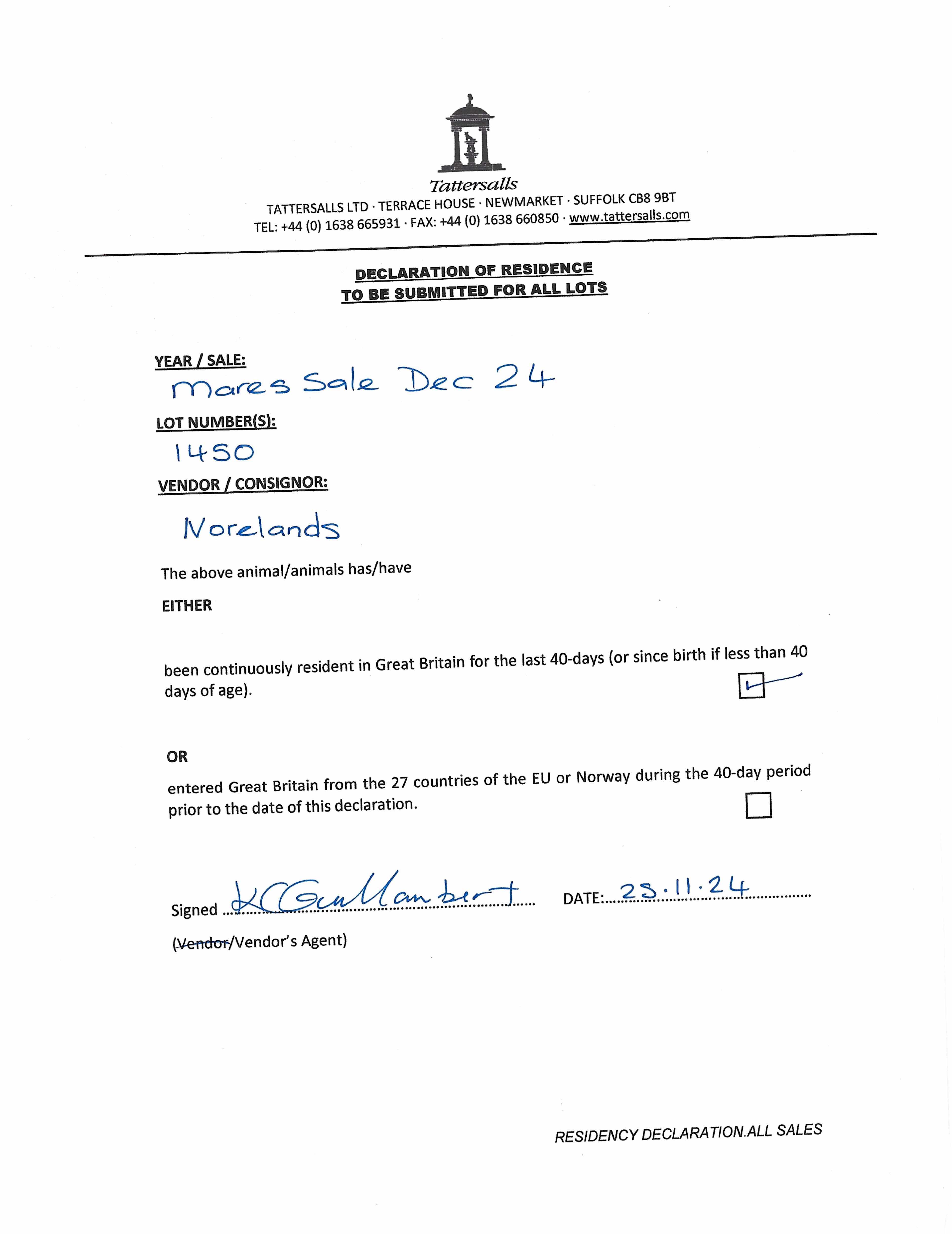 Consignor: Norelands, Ireland