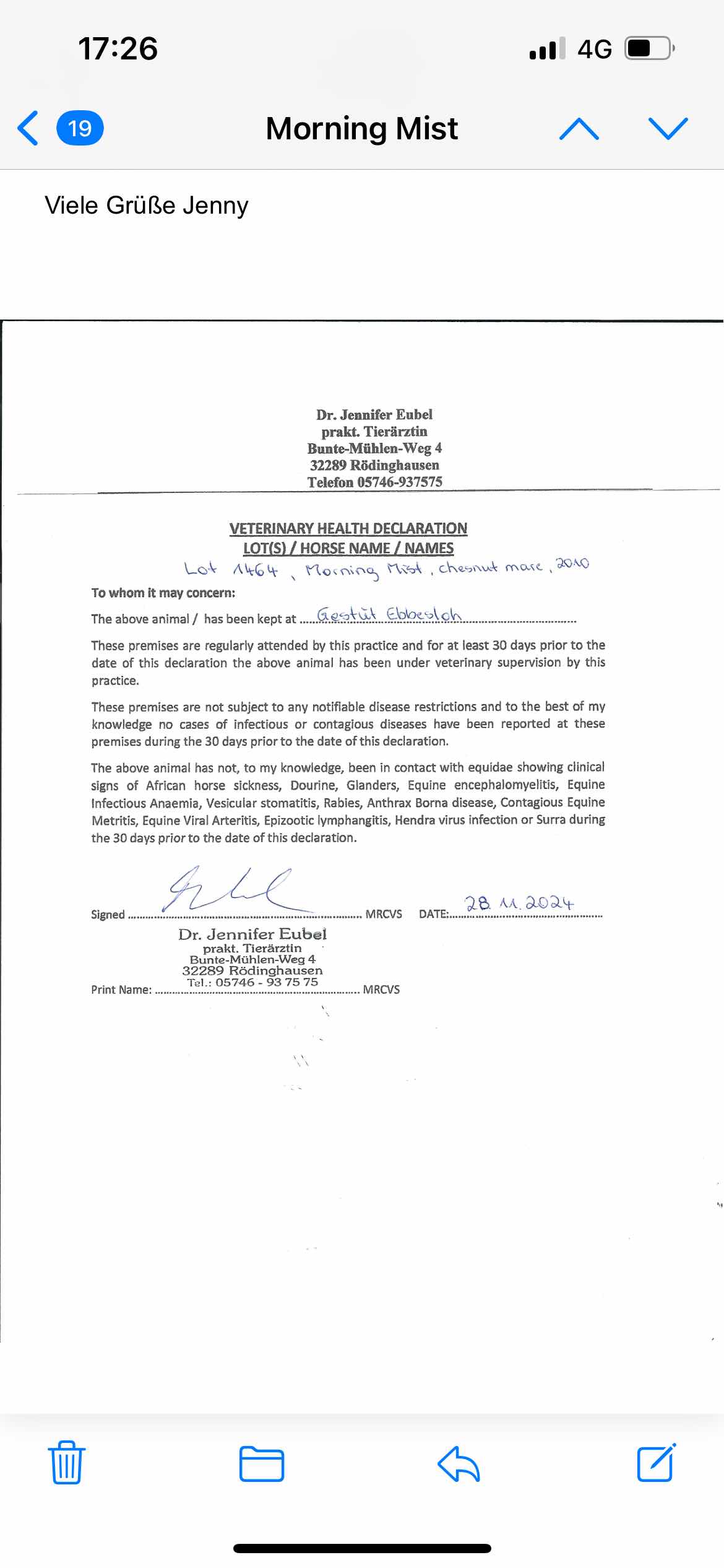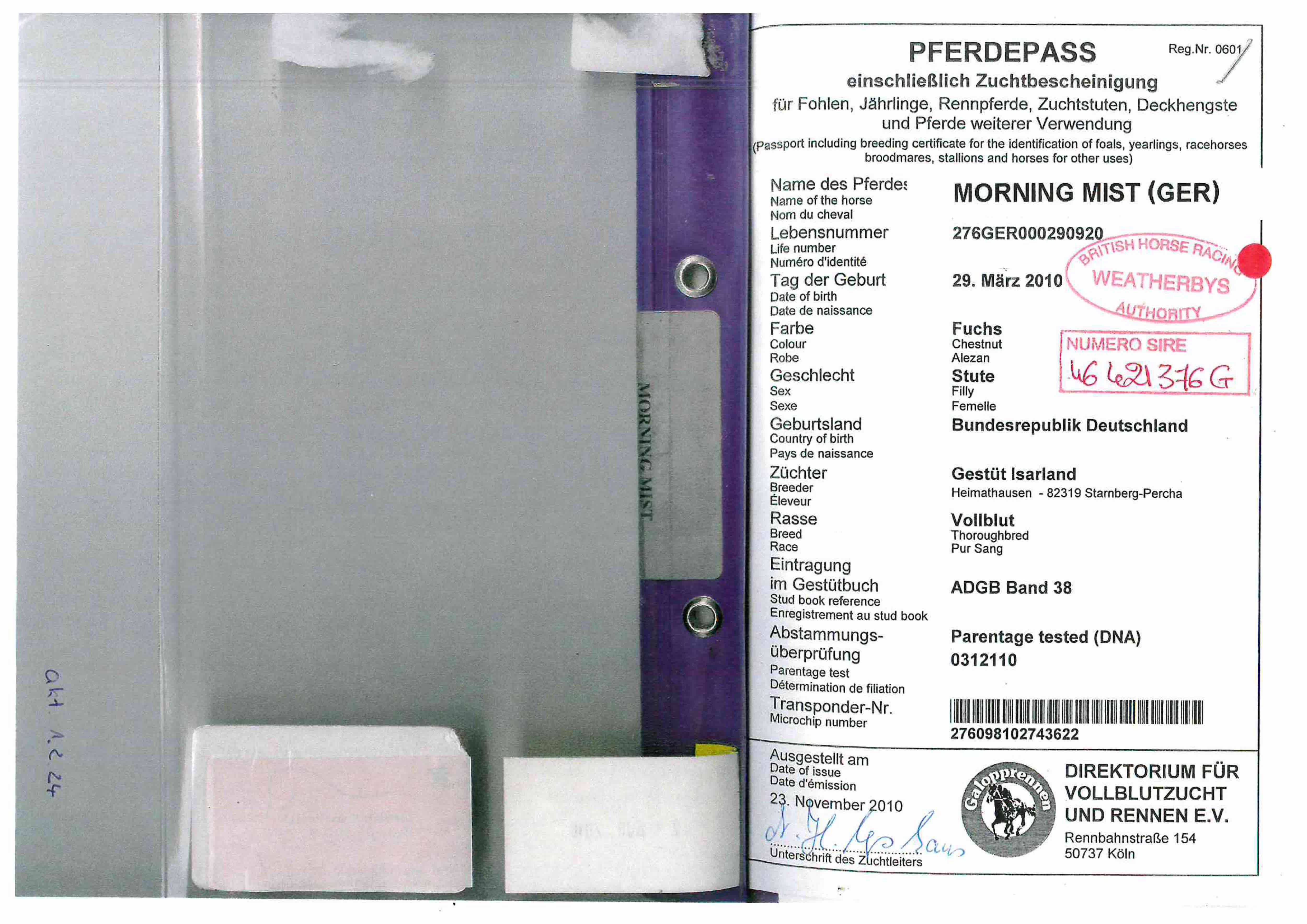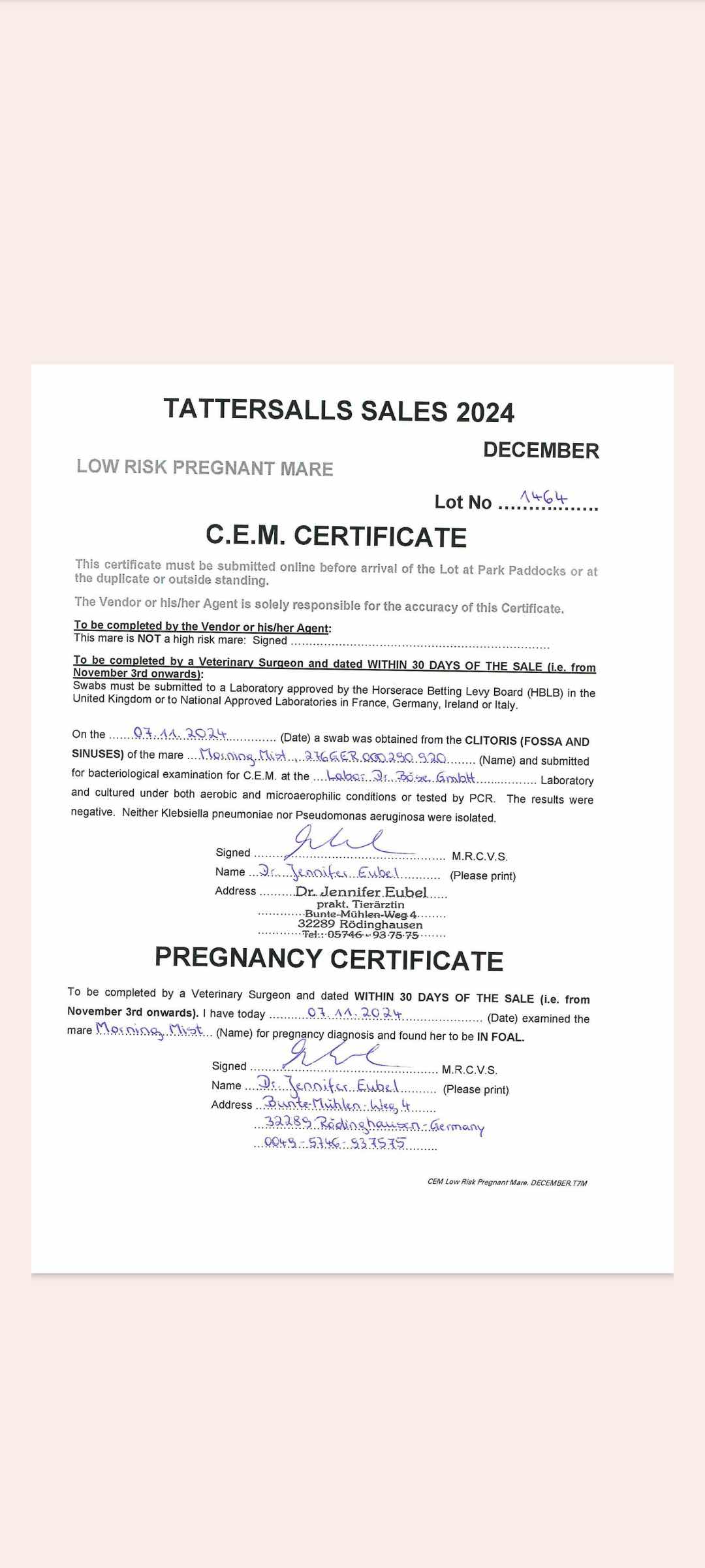 December Mare Sale 2007 lot 1946 Morning Rise (GER) (F. by Acatenango (GER)), Voute Sales Ltd. (Agent)=>DXB Bloodstock 18,000 gns