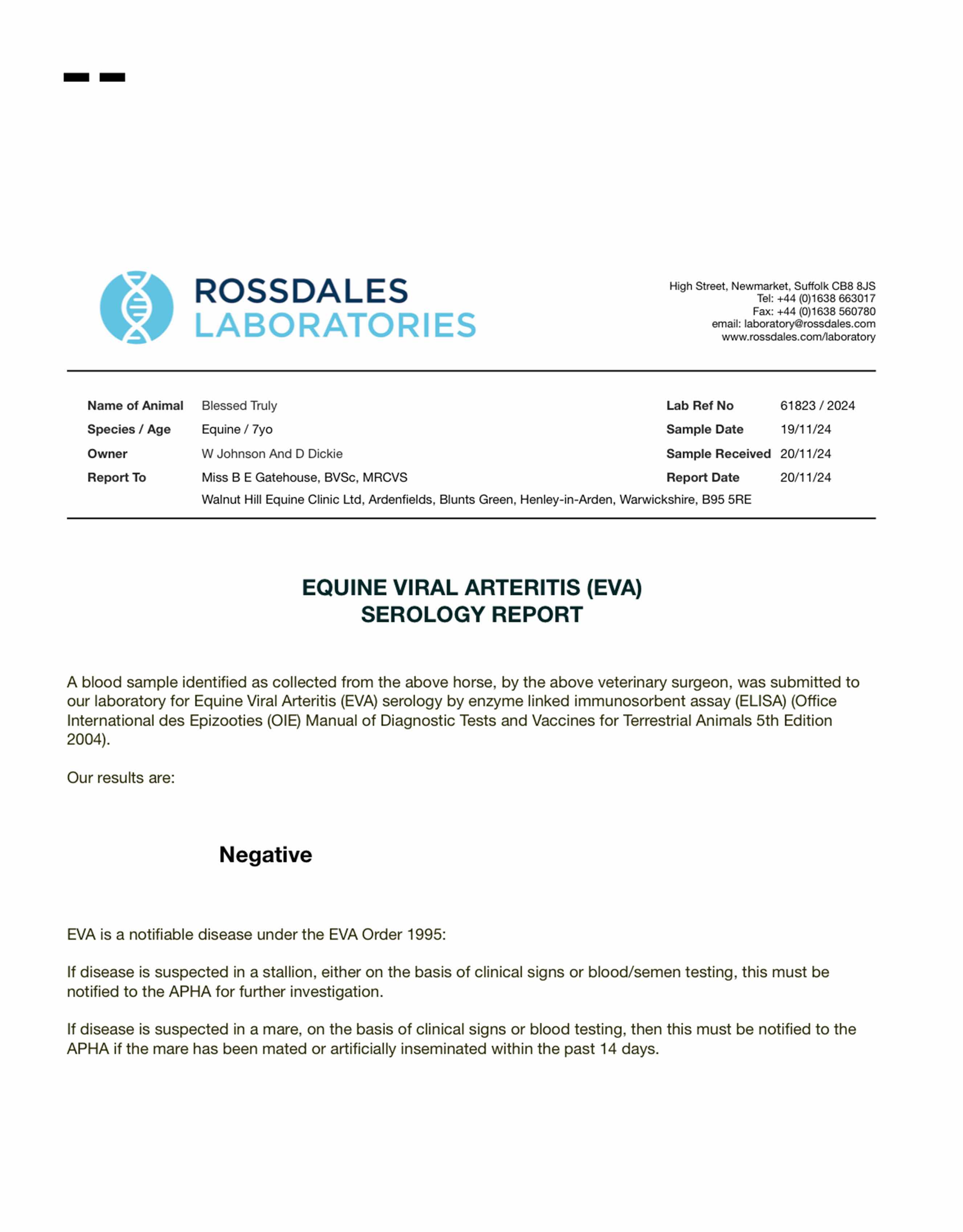 Official Veterinarian Declaration
