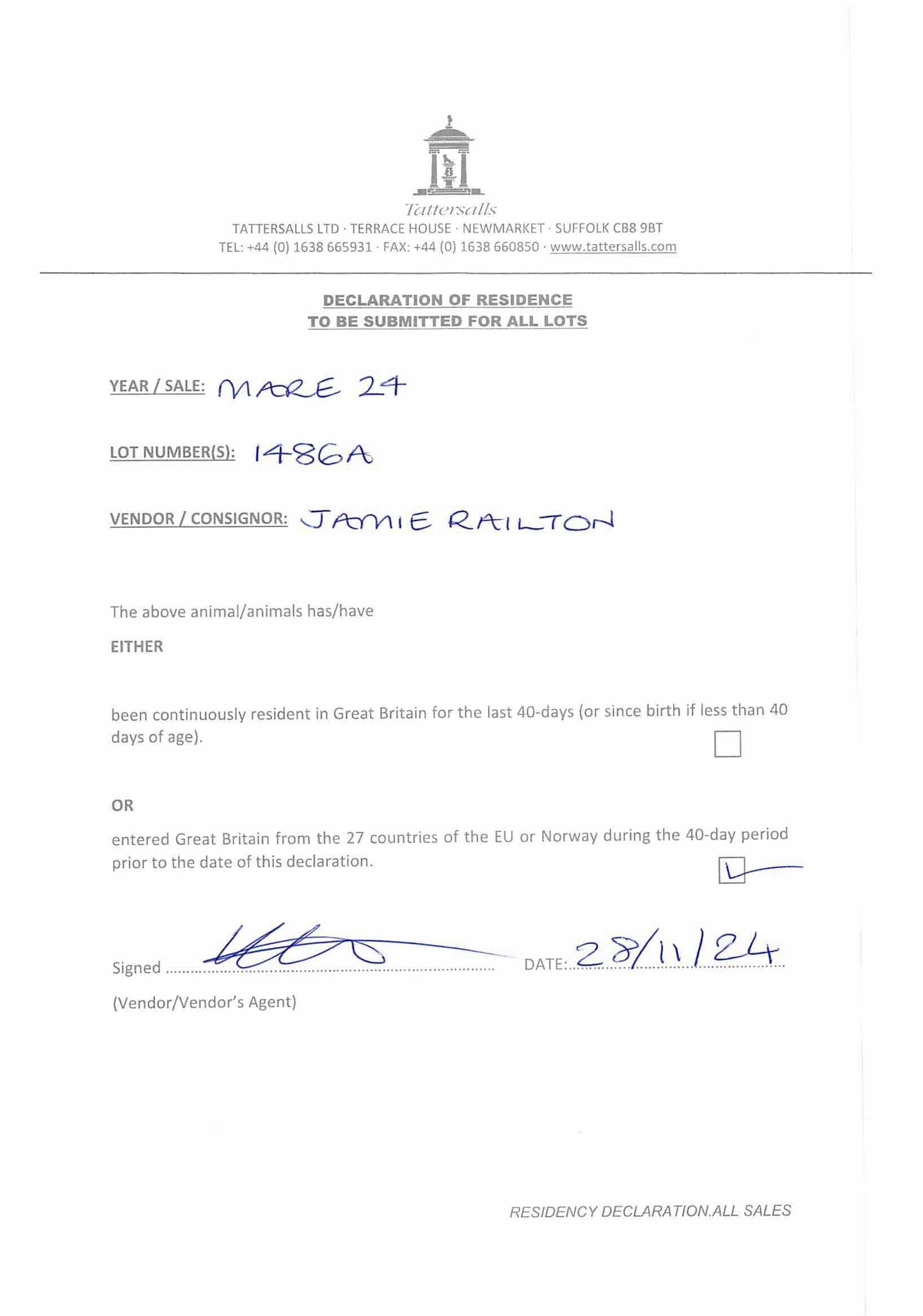 Consignor: Jamie Railton (Agent)