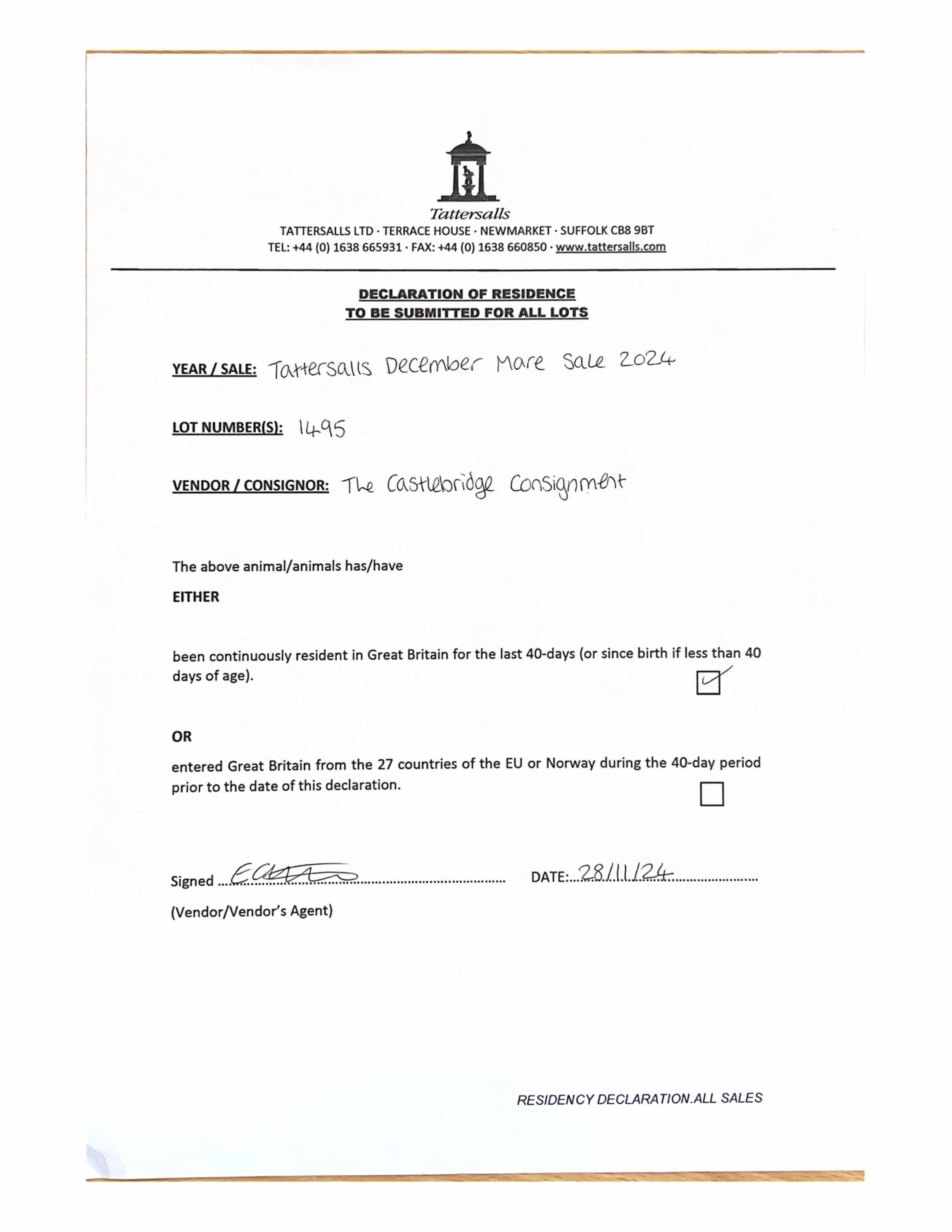December Mare Sale 2022 lot 1507 Darkest (IRE) (M.), Barton Sales=>Dean Hawthorne Bloodstock / Badgers Bloodstock 125,000 gns