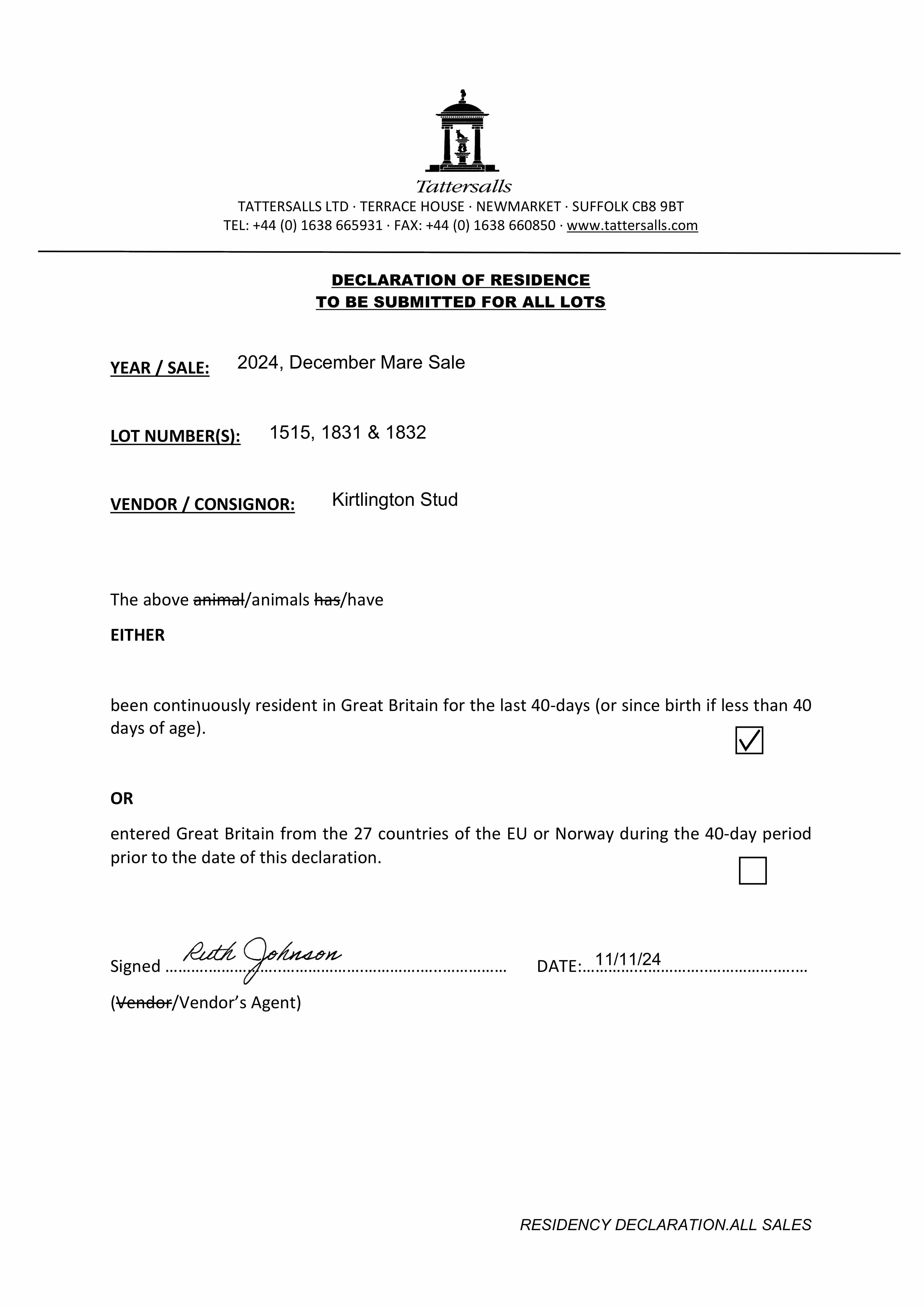 Contact: Chris Budgett ✆ 07850 006800 ✉ info@kirtlingtonstud.com