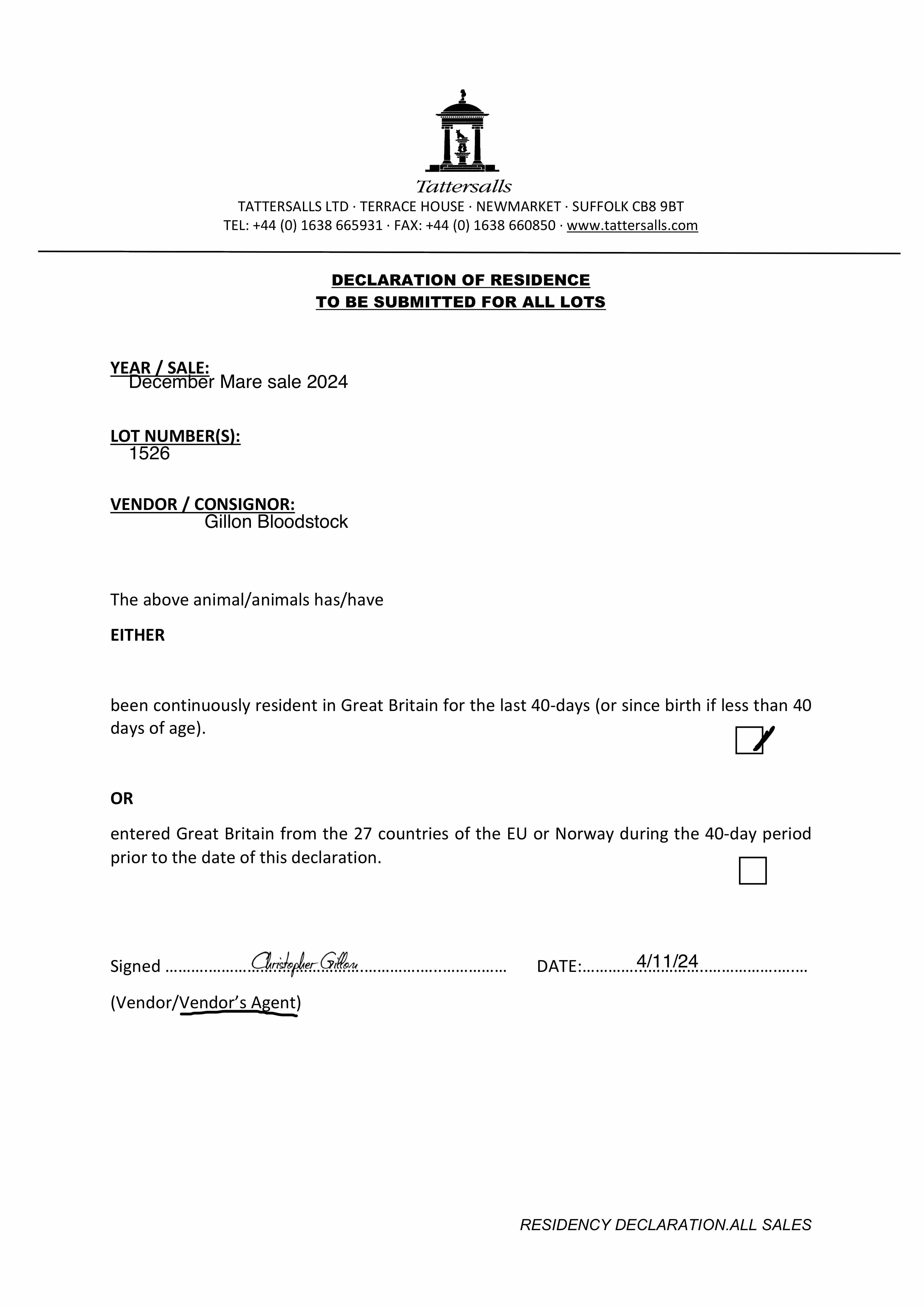 October Yearling Sale, Book 3 2024 lot 1343 F. by Cracksman (GB) 2023, Gillon Bloodstock=>Vendor 35,000 gns