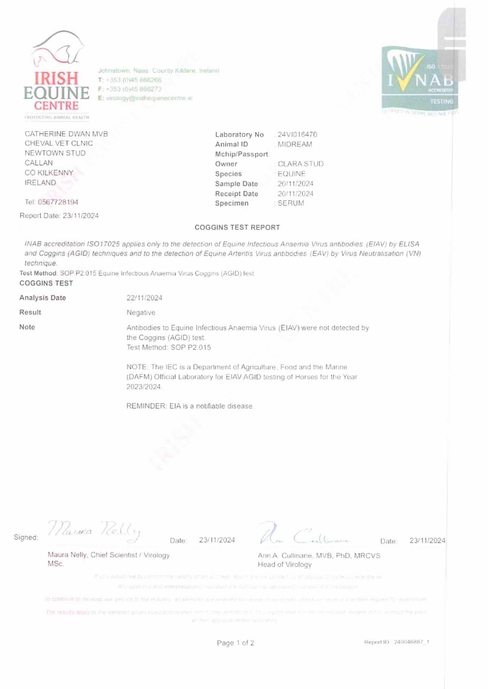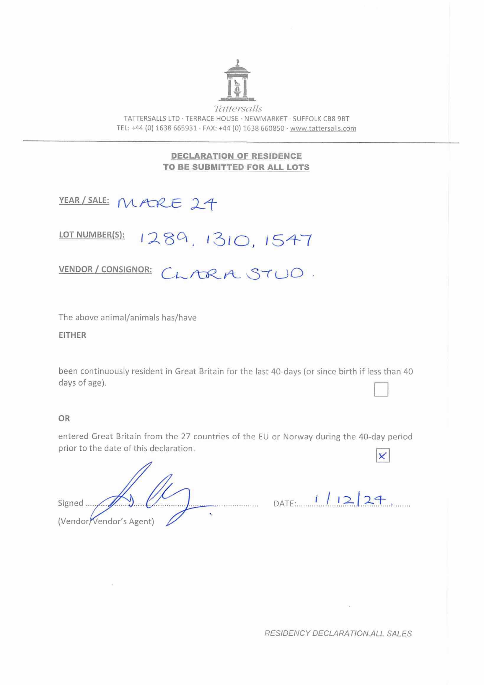 Consignor: Clara Stud, Ireland