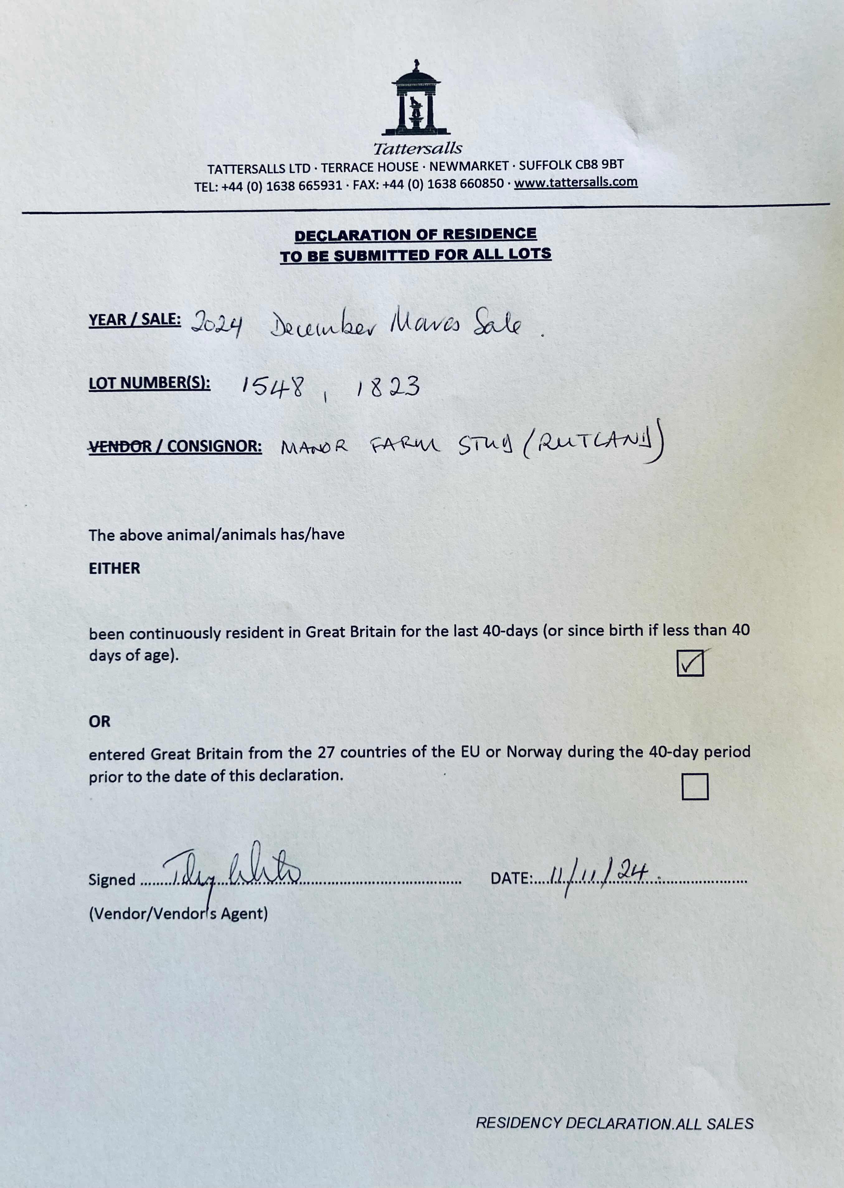 Consignor: Manor Farm Stud (Rutland)
