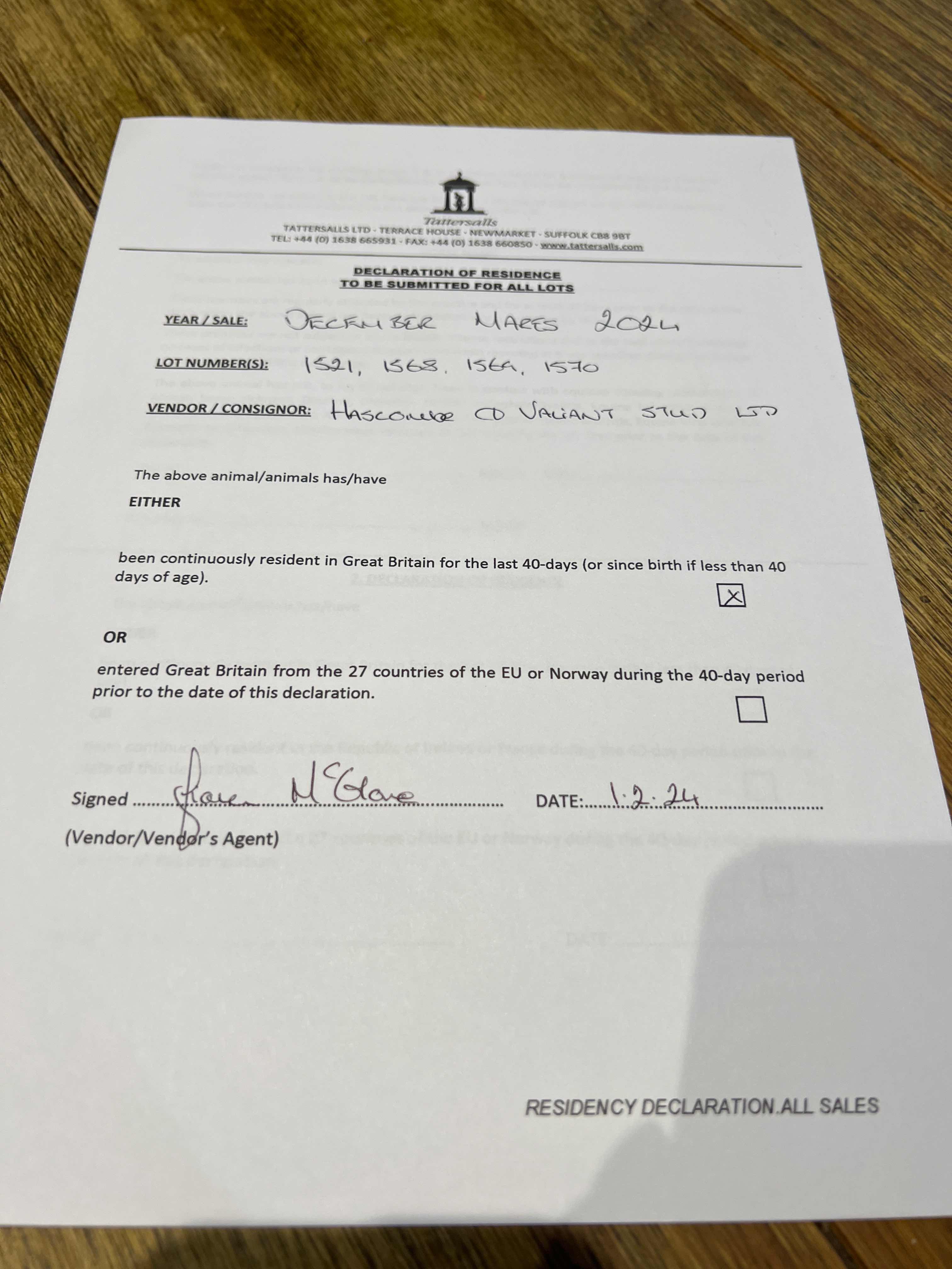 December Mare Sale 2025 lot 1364, Castledillon Stud, Ireland (Agent)=>Vendor 200,000 gns