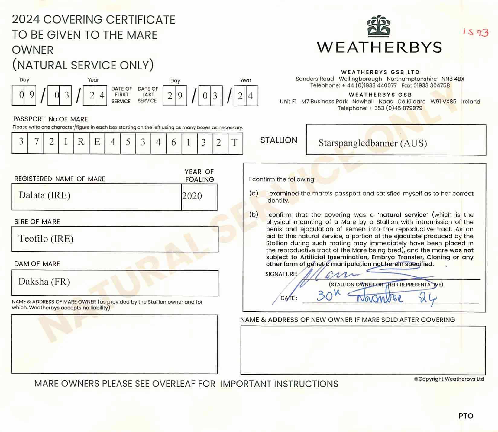 Covering Certificate