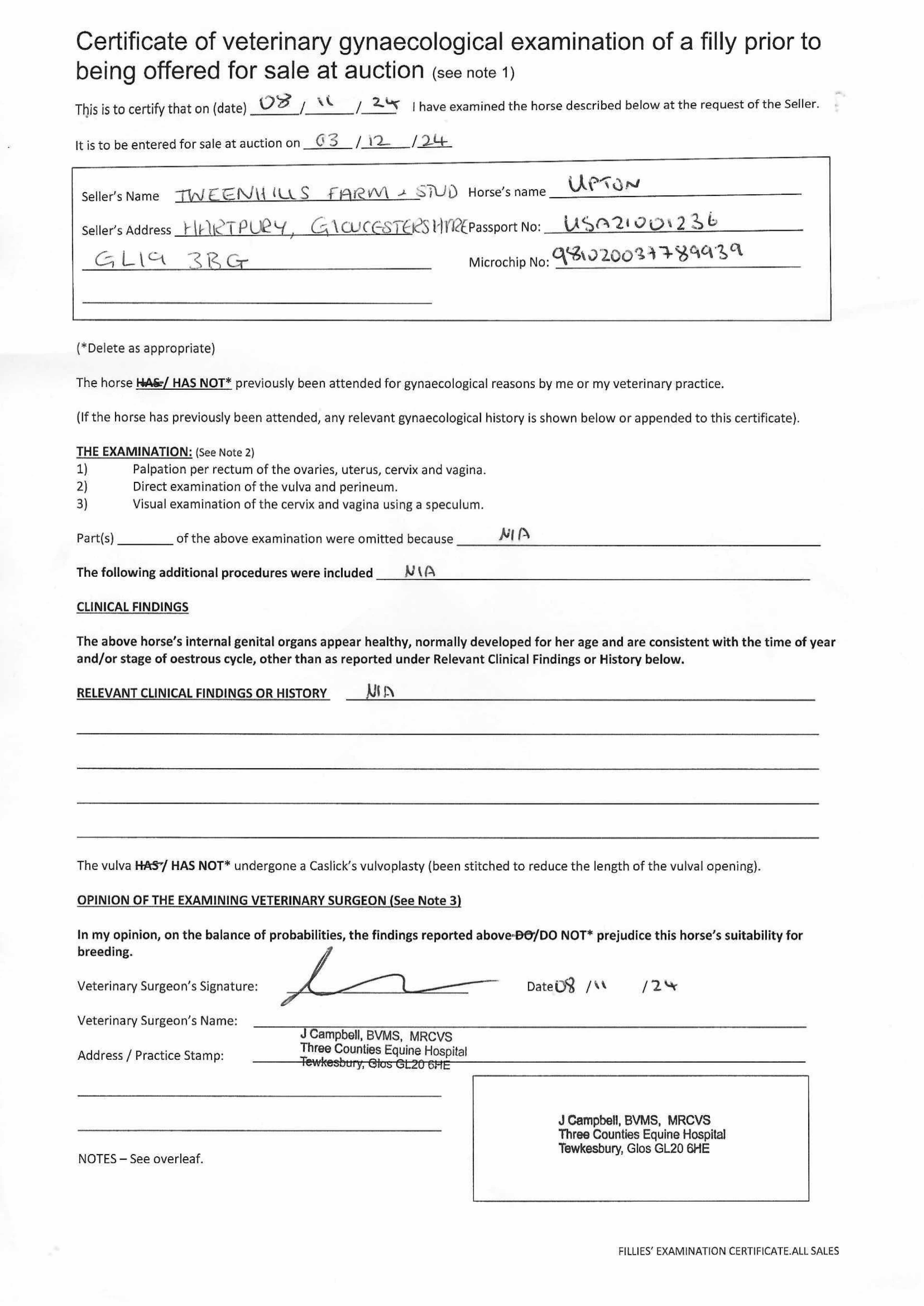 Consignor: Tweenhills Farm & Stud