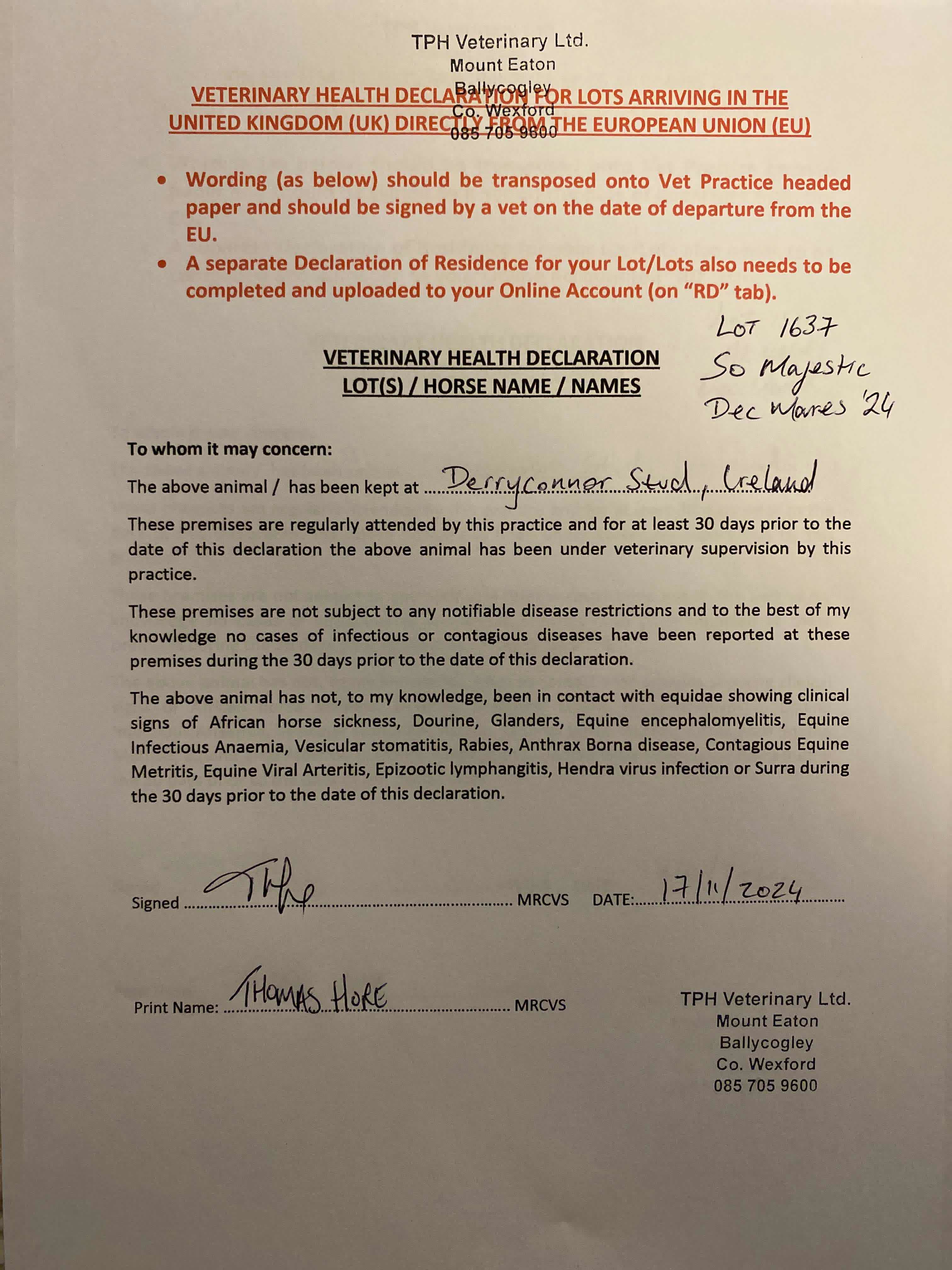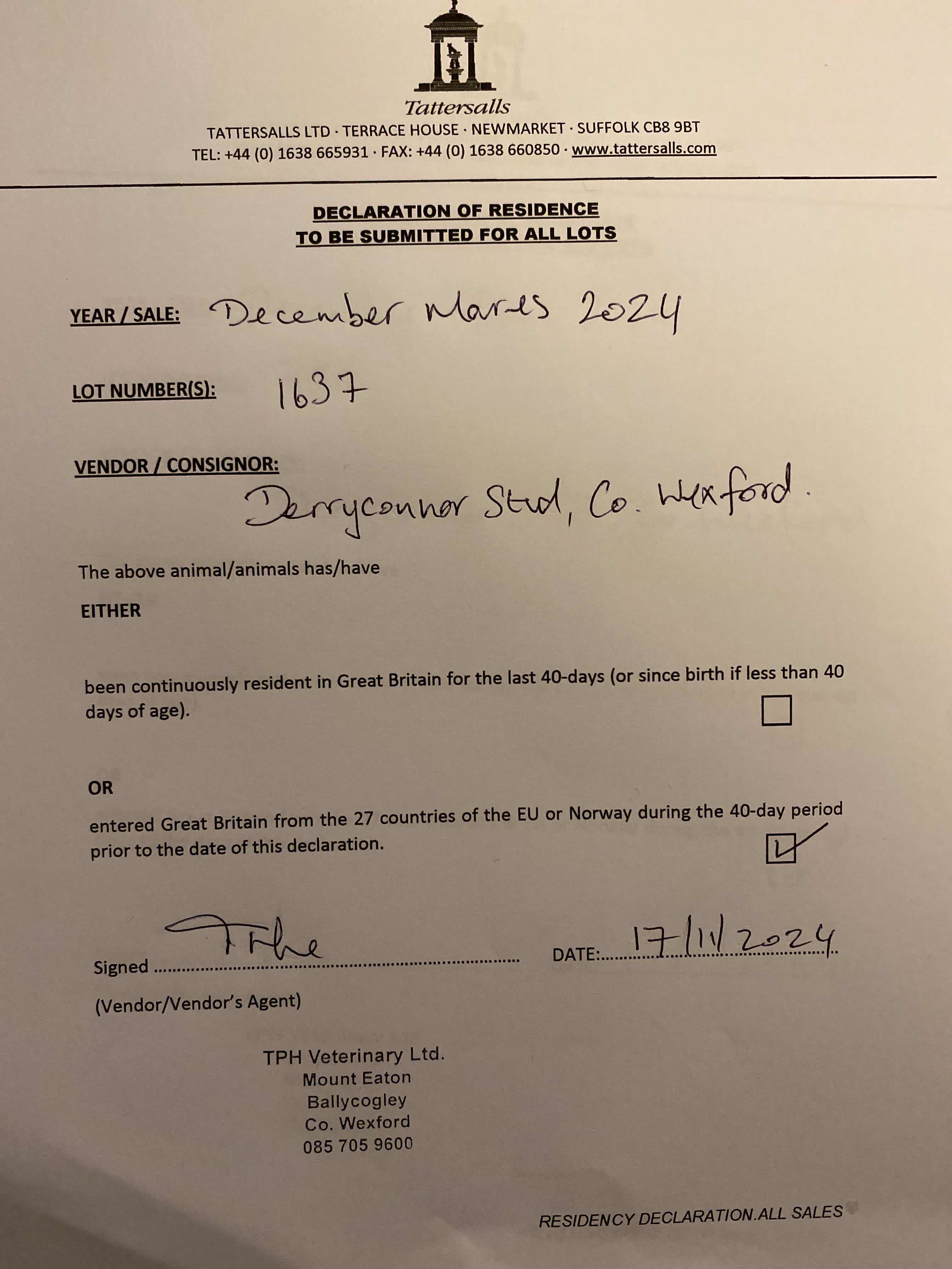 Consignor: Derryconnor Stud, Ireland