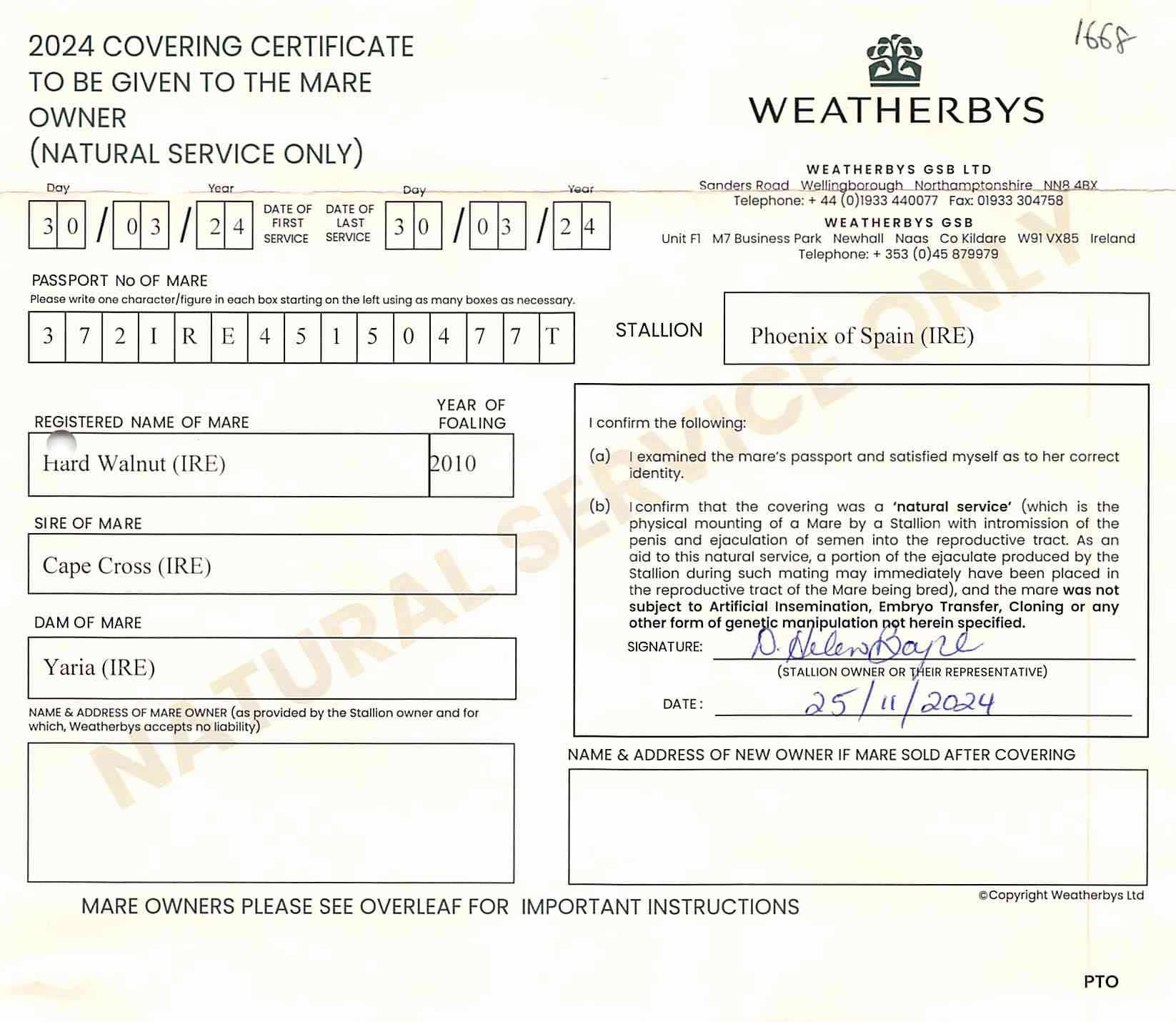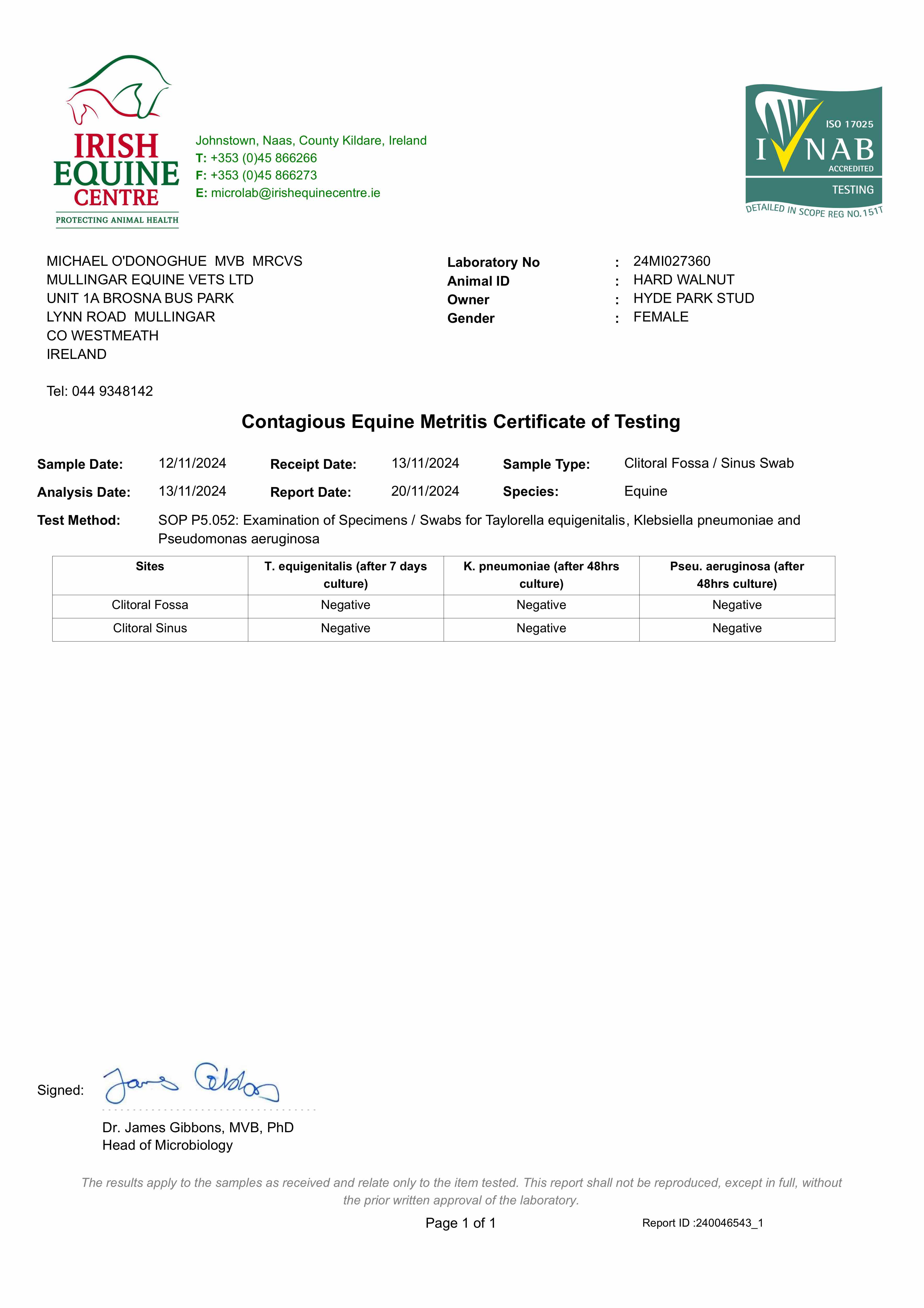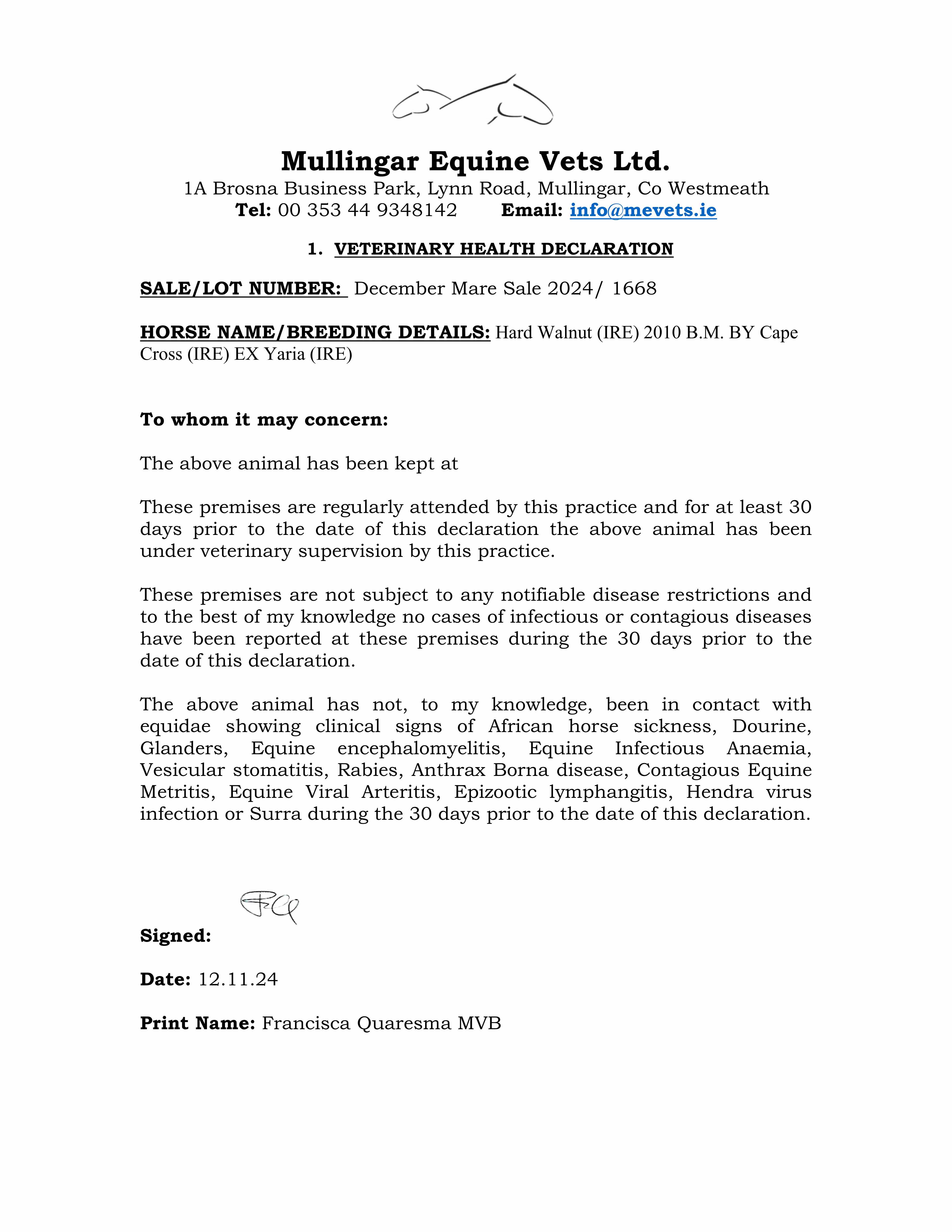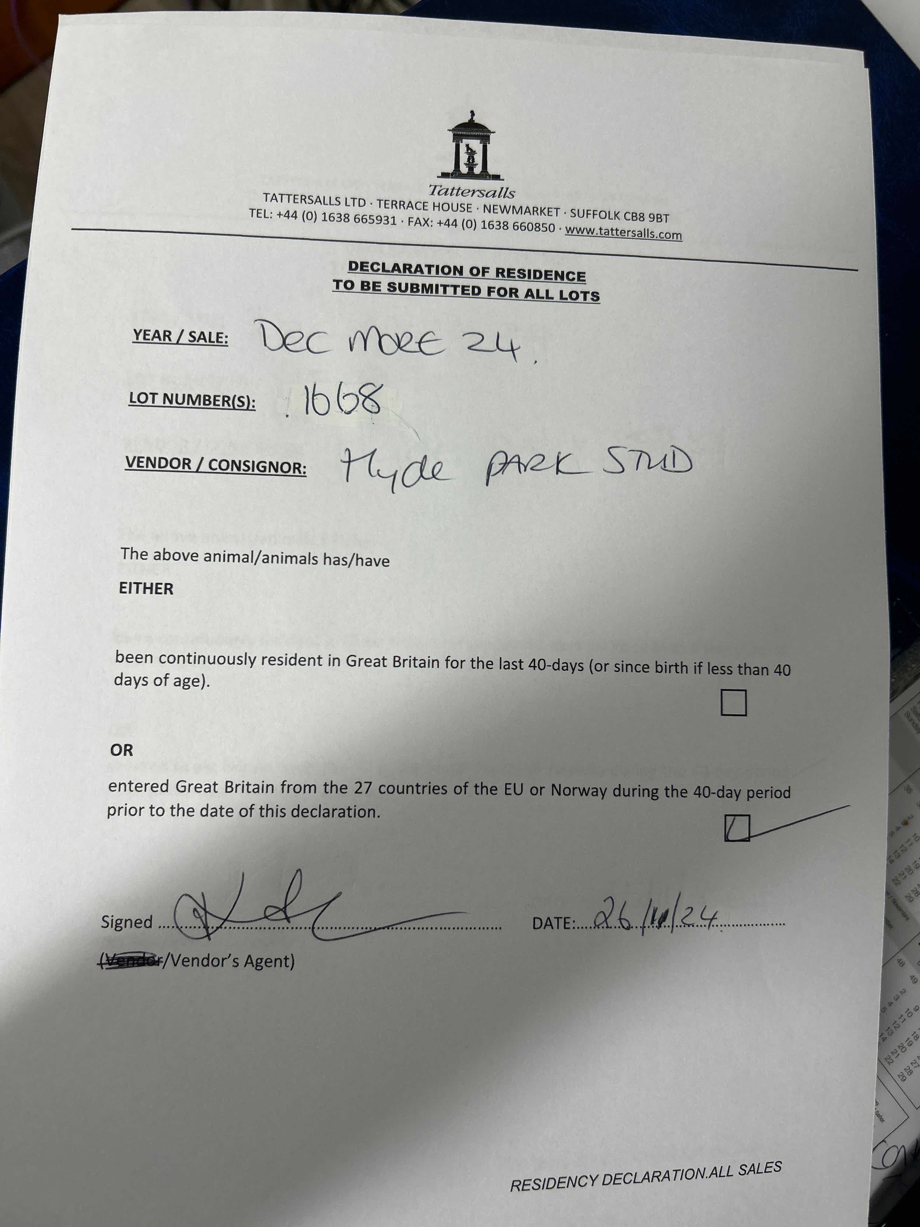 Consignor: Hyde Park Stud, Ireland