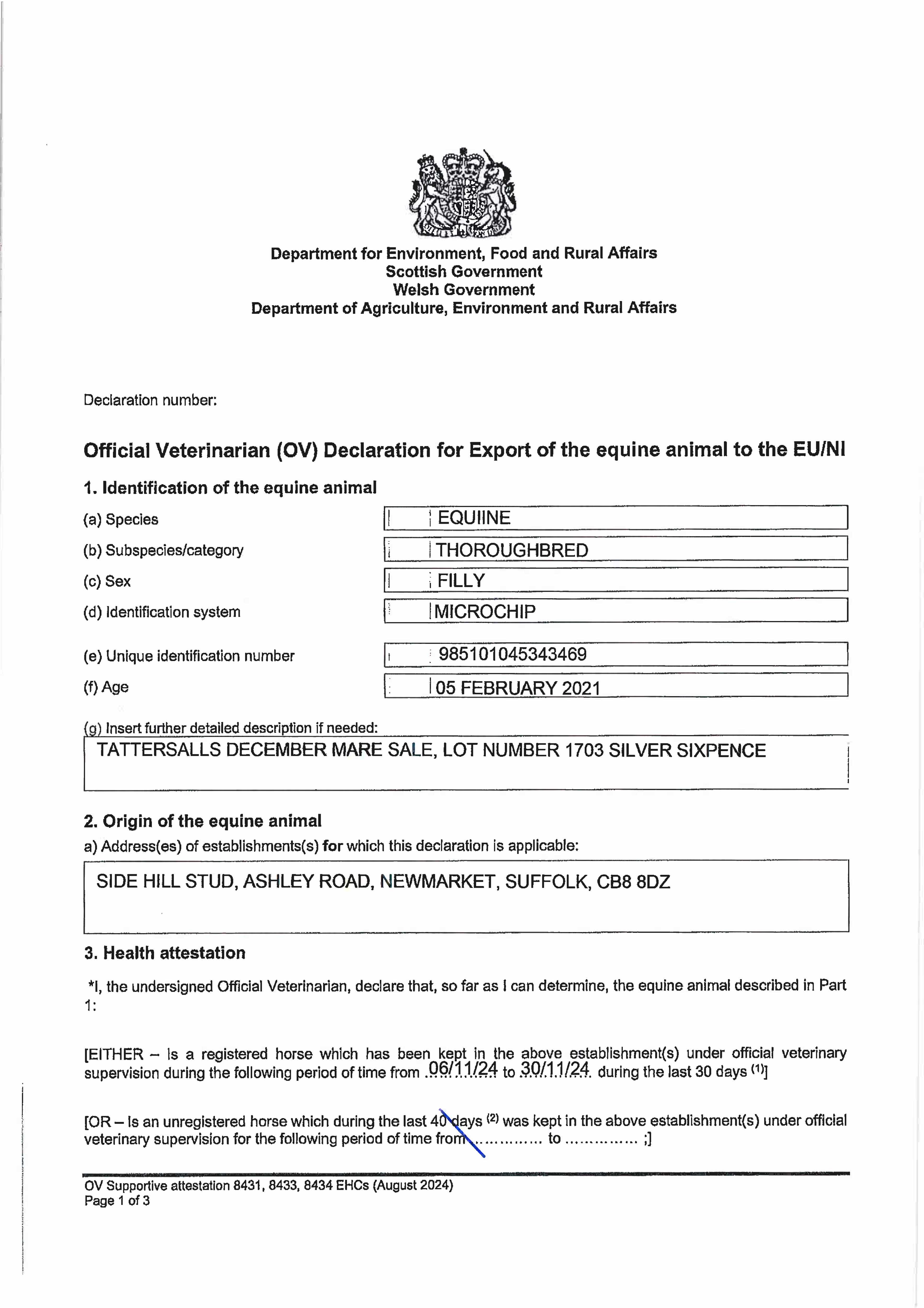 December Mare Sale 2025 lot 1431 Satavia (GB) (F. by Siyouni (FR)), Juddmonte=>Sumbe 140,000 gns