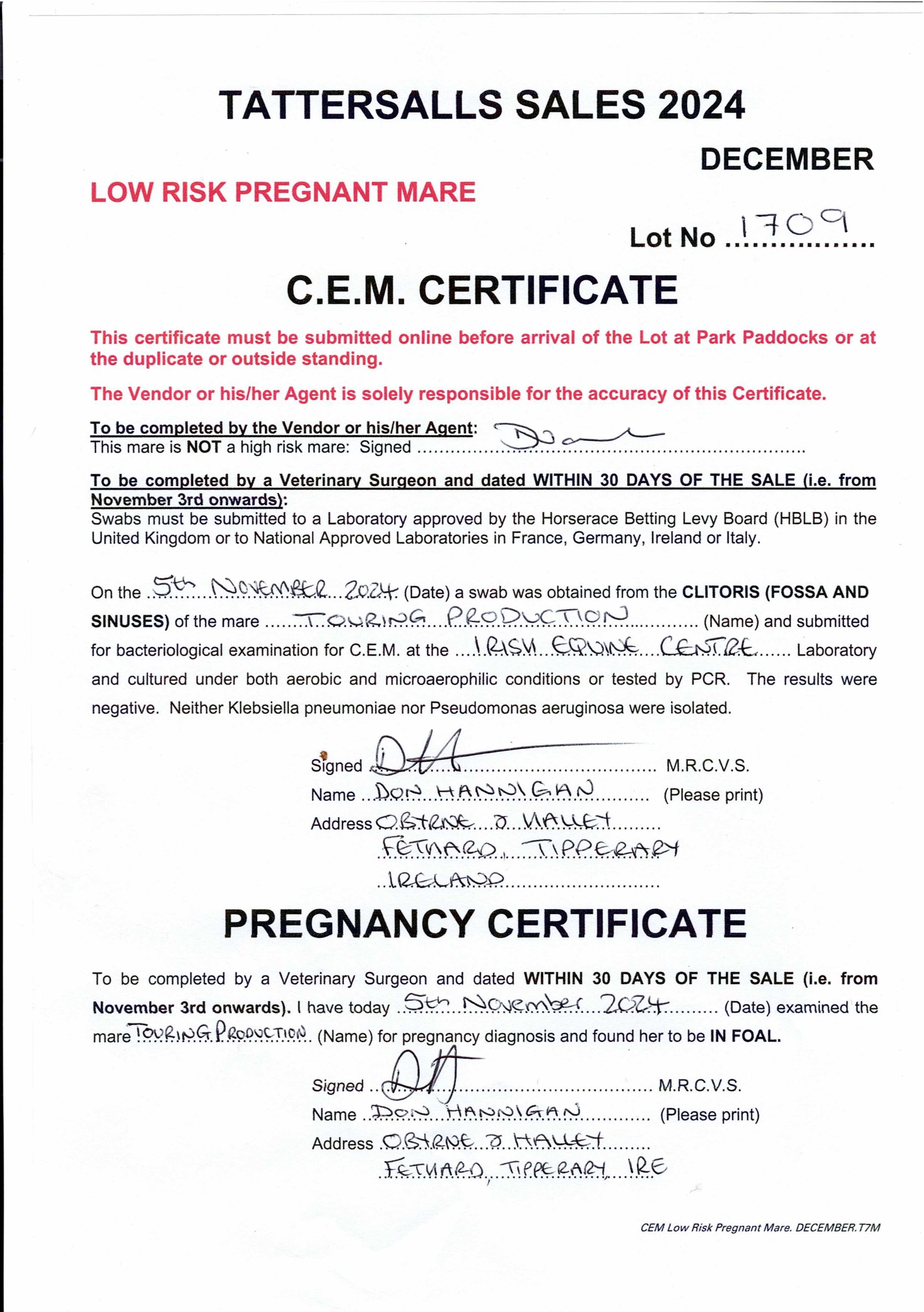 Consignor: Watership Down Stud