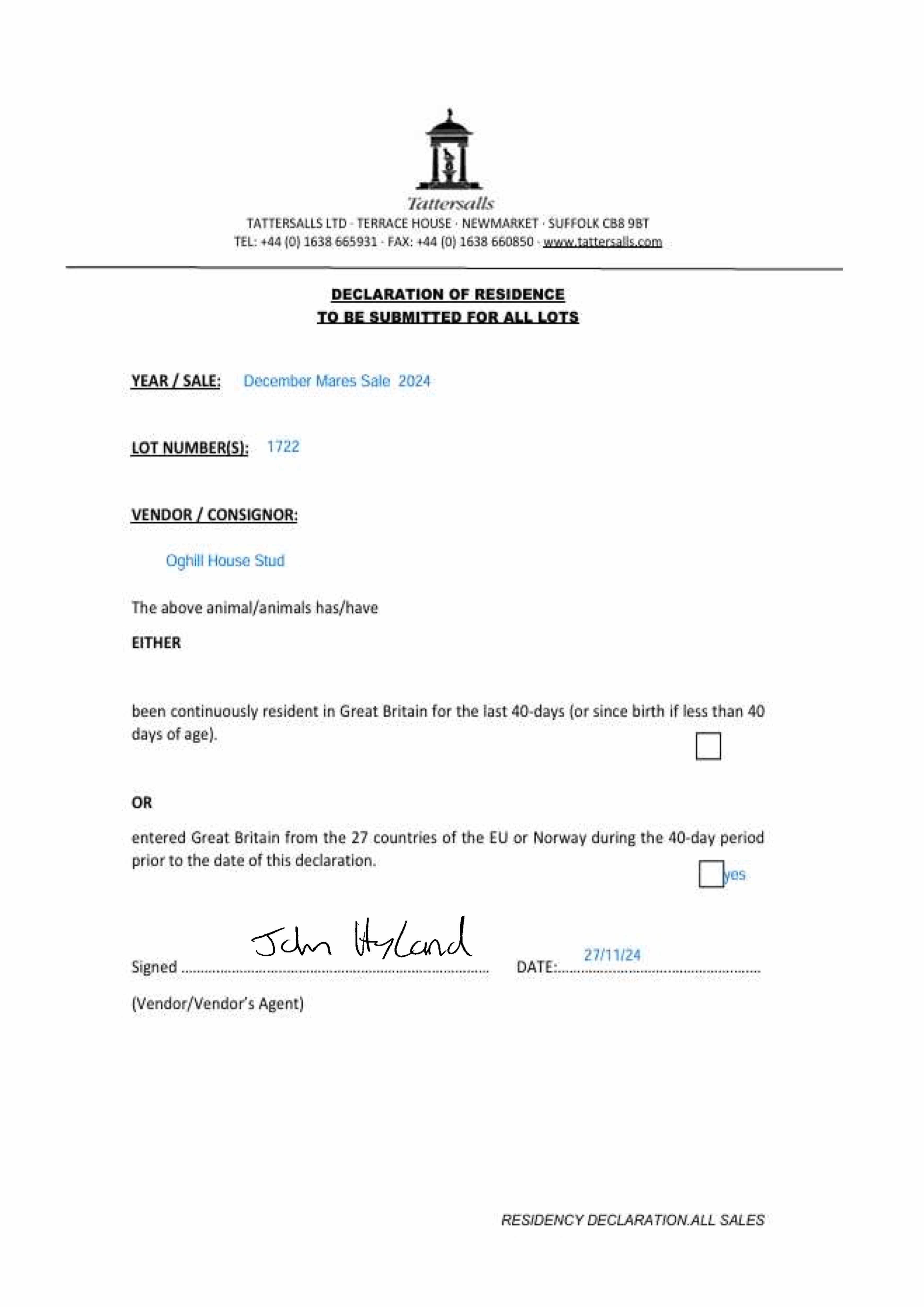 Consignor: Oghill House Stud, Ireland