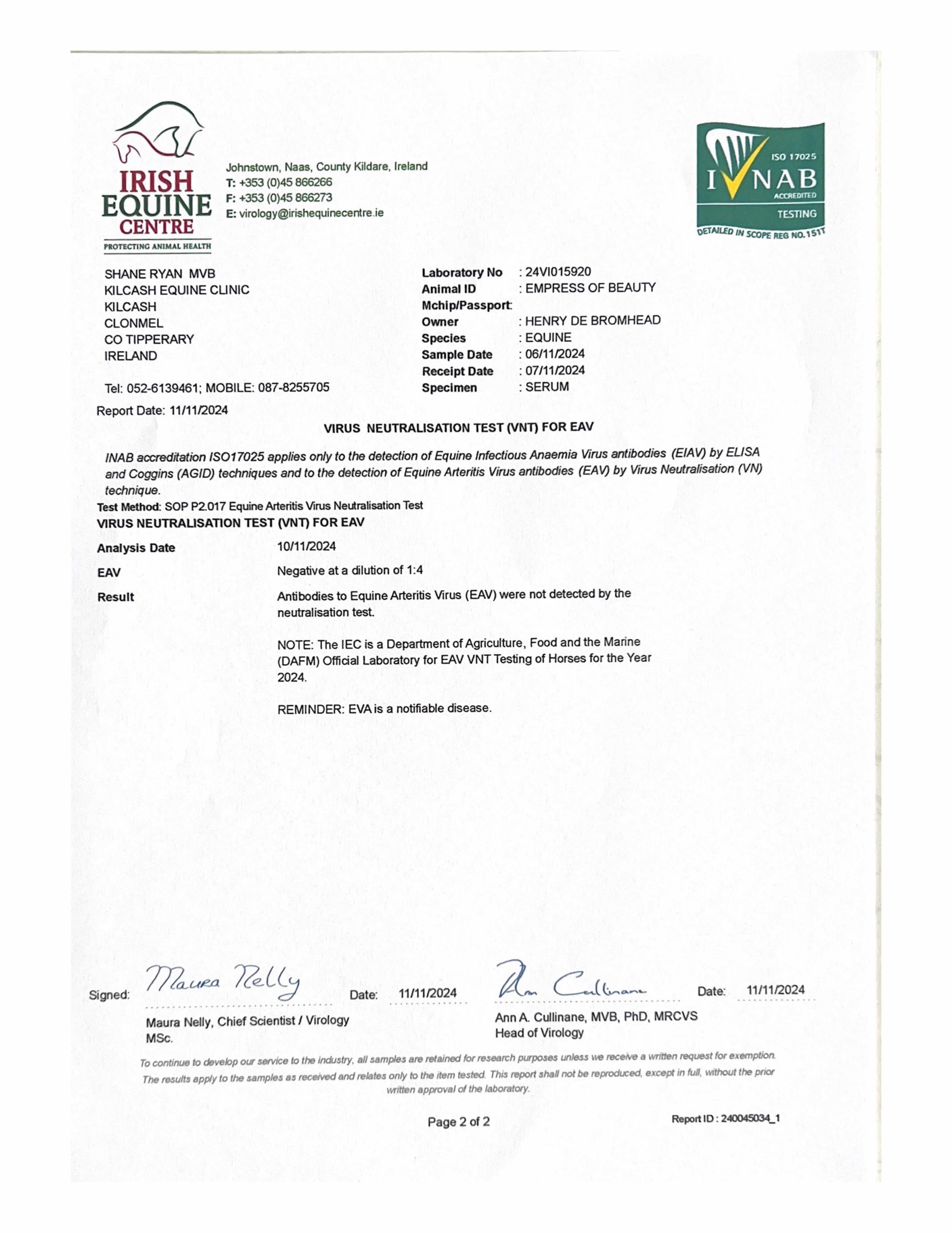 Piroplasmosis Certificate