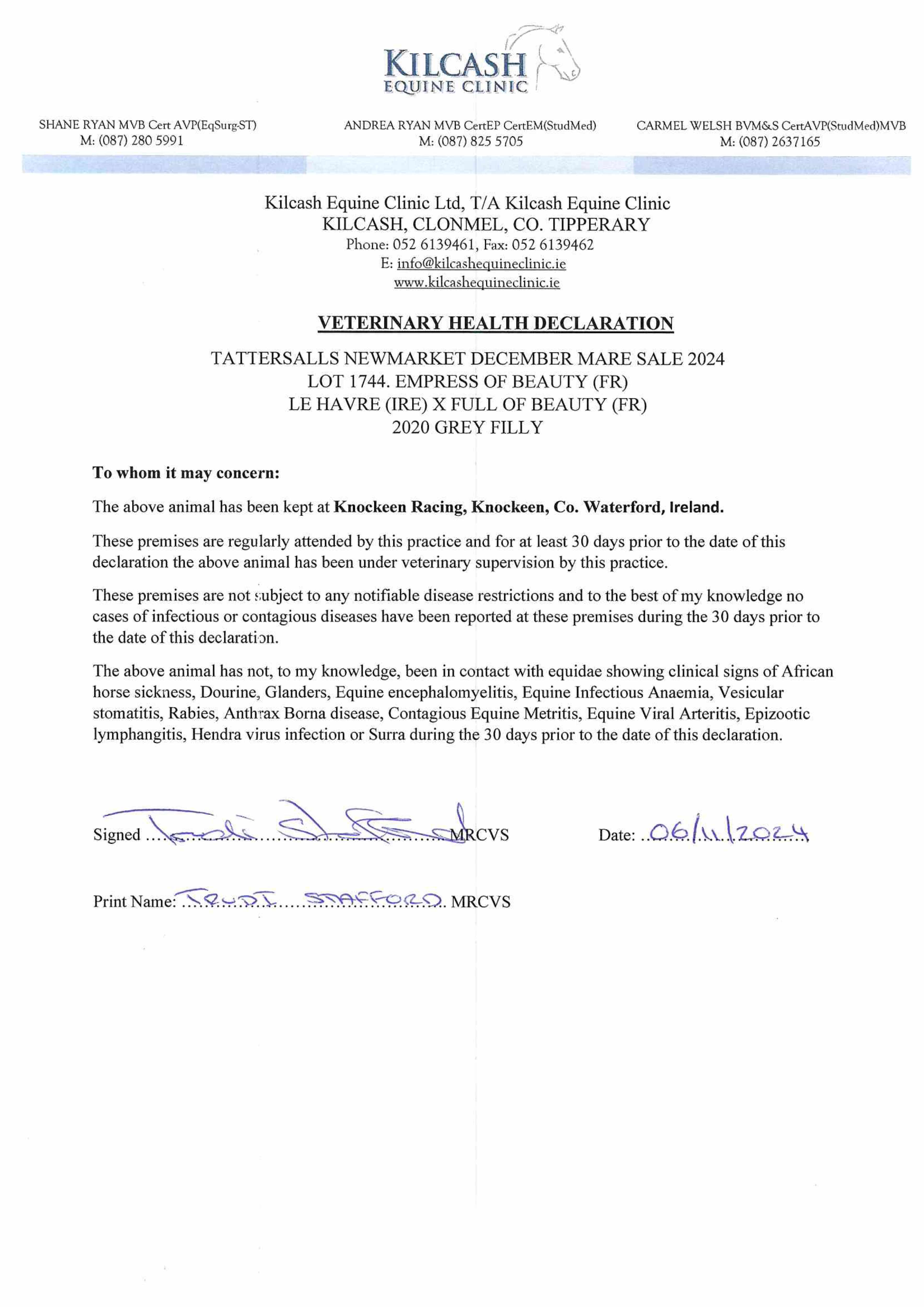 Fillies Examination Cert