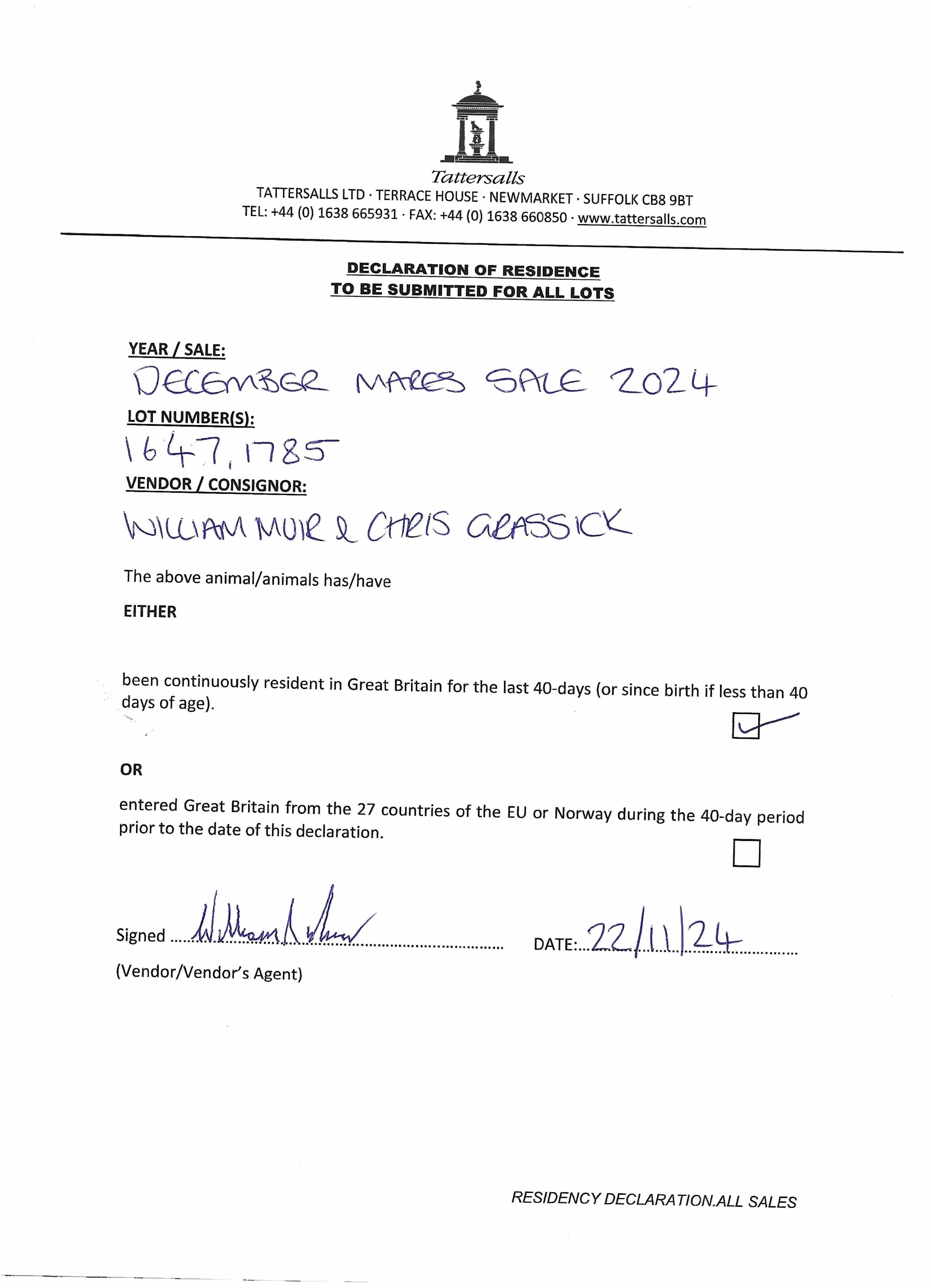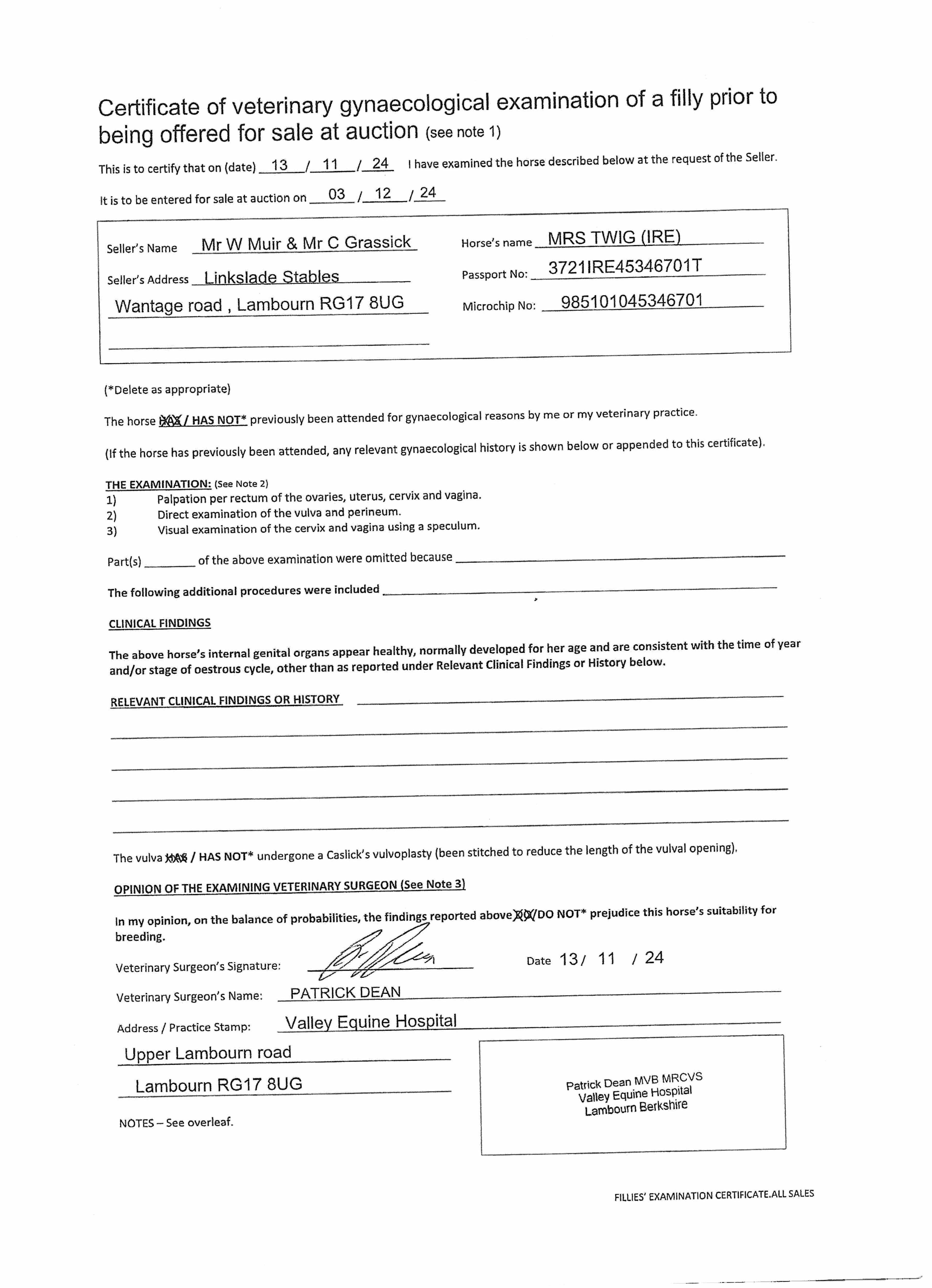 Consignor: Linkslade Stables (W. Muir & C. Grassick)