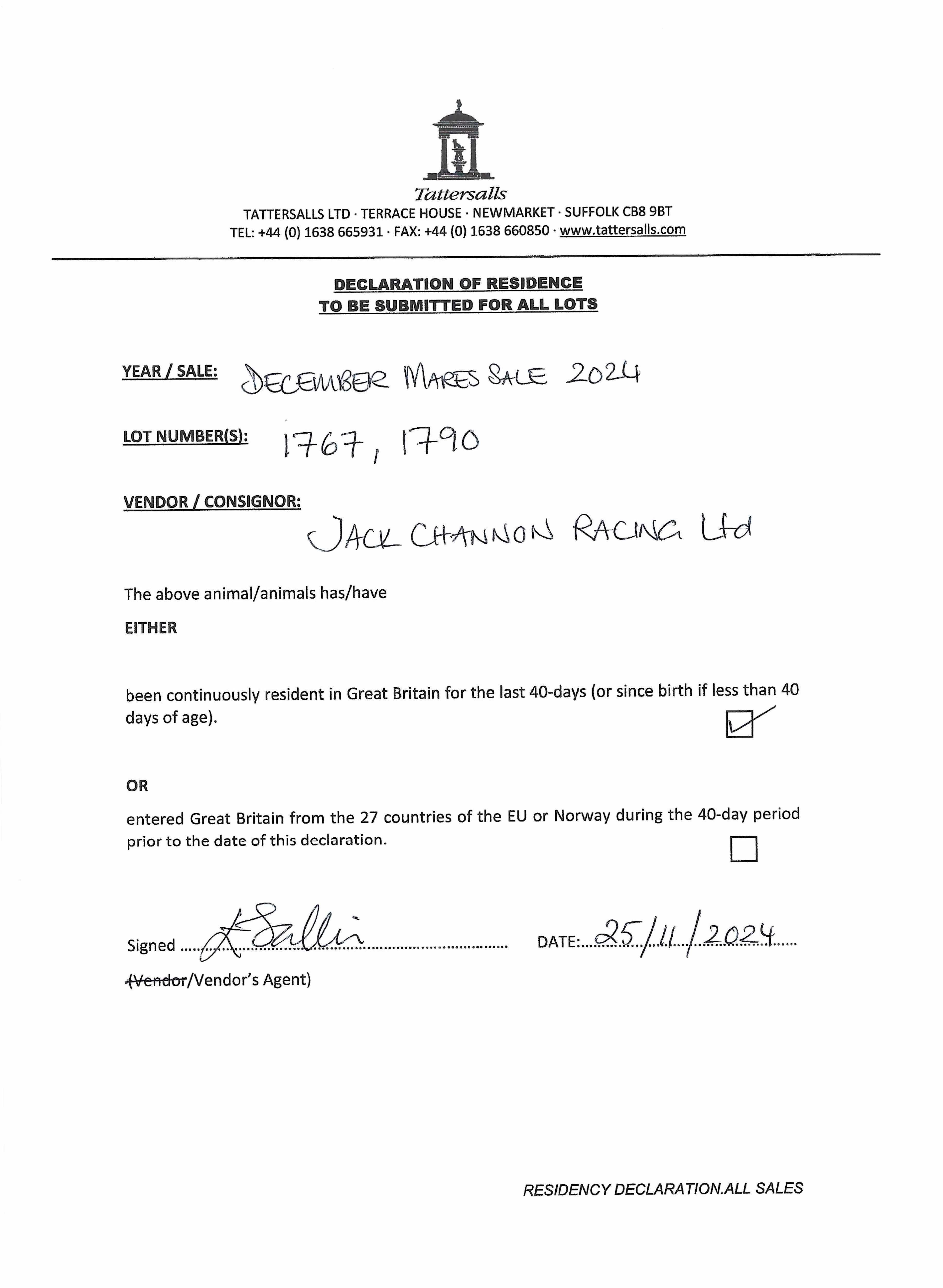 October Yearling Sale, Book 3 2024 lot 1791 F. by Coulsty (IRE) 2023, Rathasker Stud, Ireland=>Jamie Osborne 18,000 gns