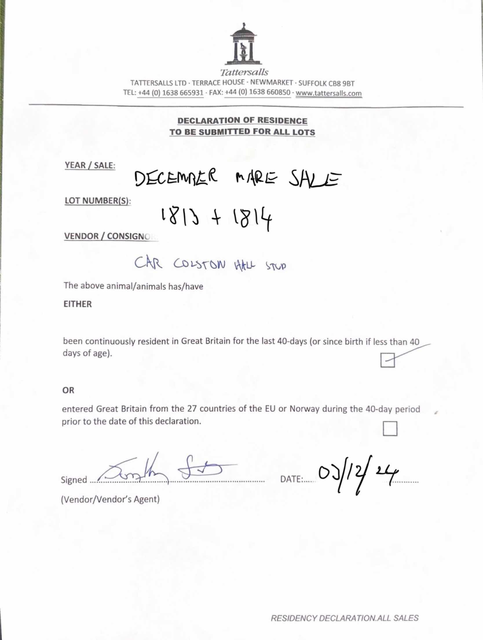 December Mare Sale 2024 lot 1814 Loved By You (GB) (F. by Too Darn Hot (GB)), Car Colston Hall Stud=>Arrow Farm & Stud 15,000 gns