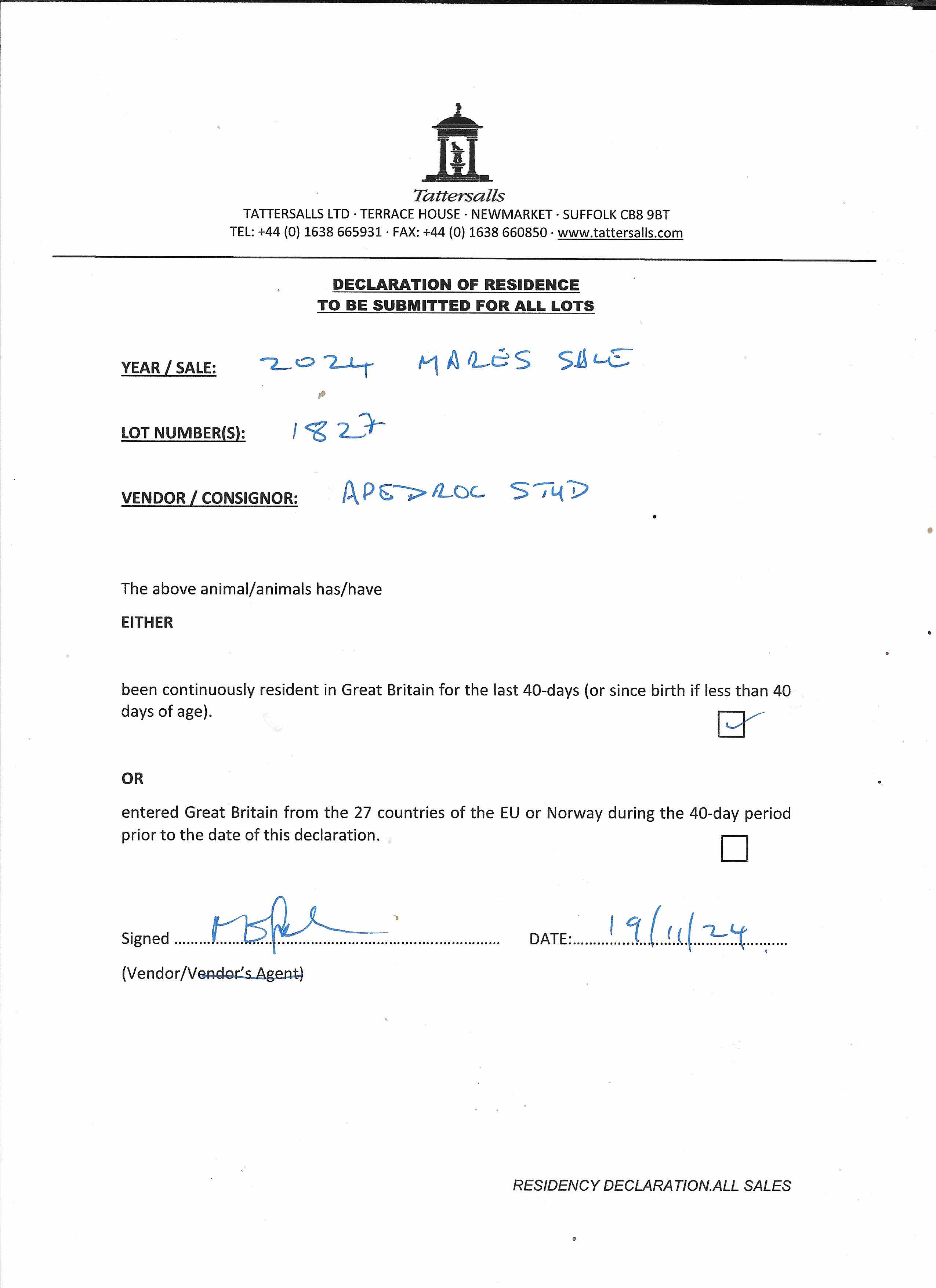 Consignor: Apedroc Stud