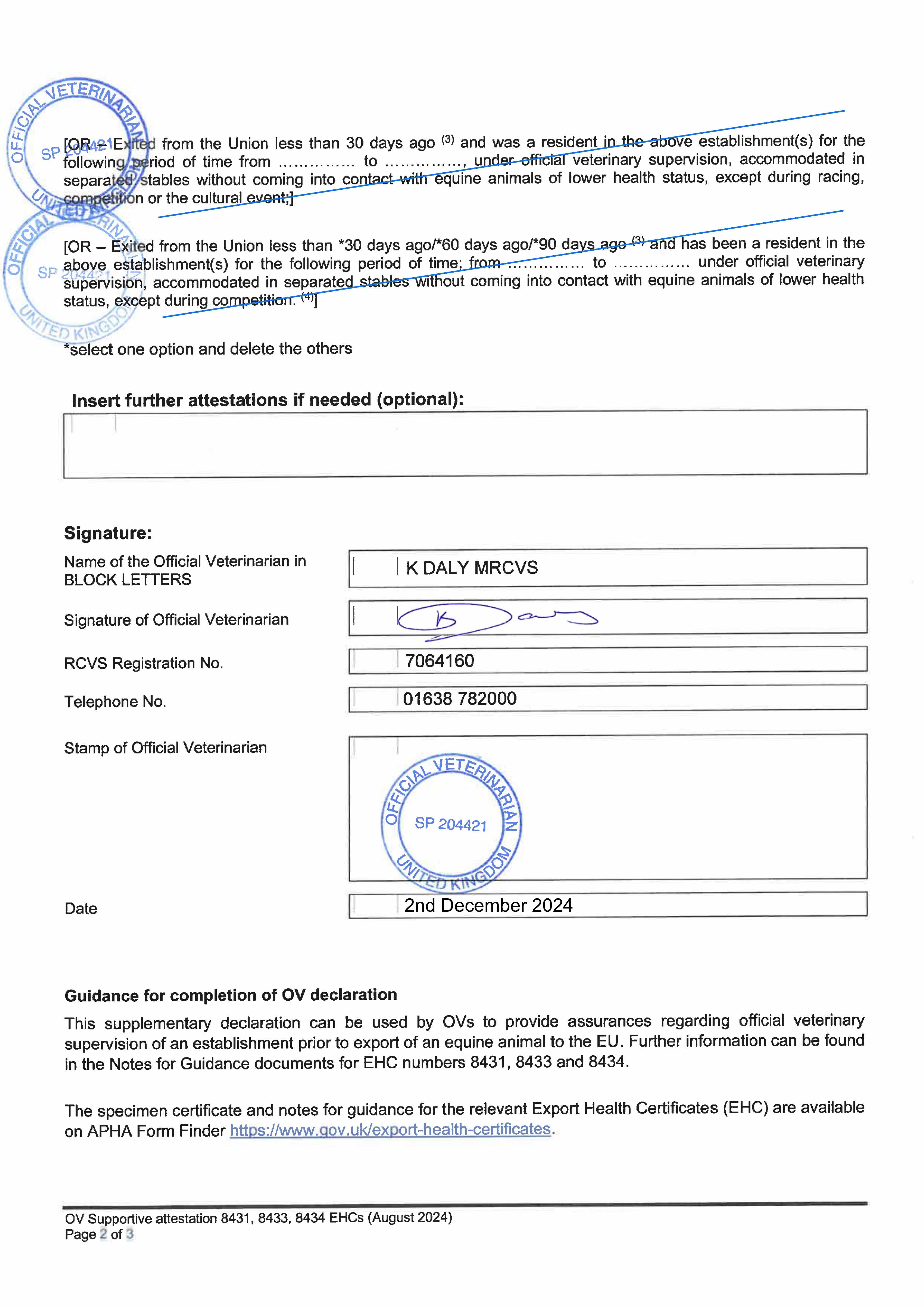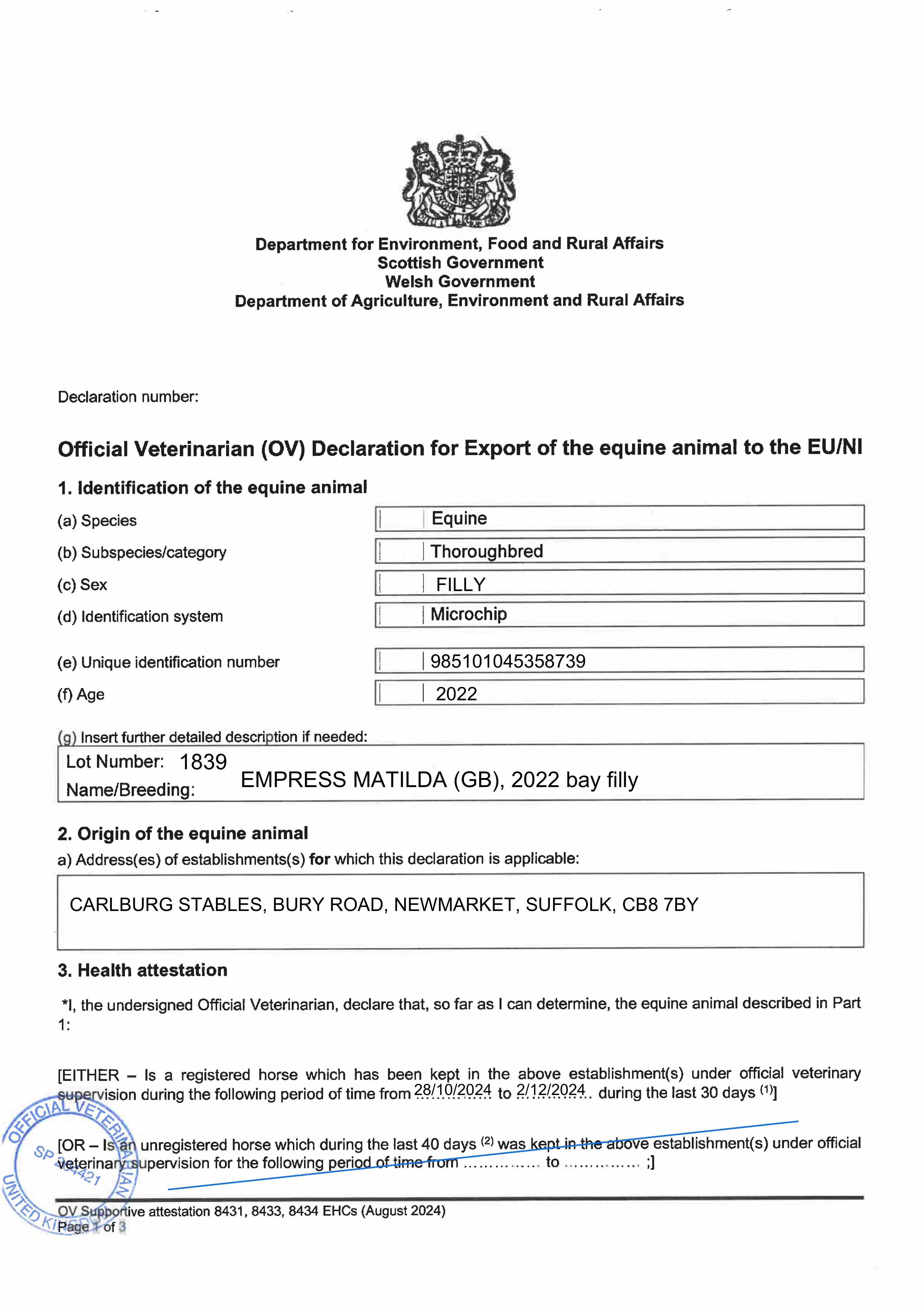 Official Veterinarian Declaration