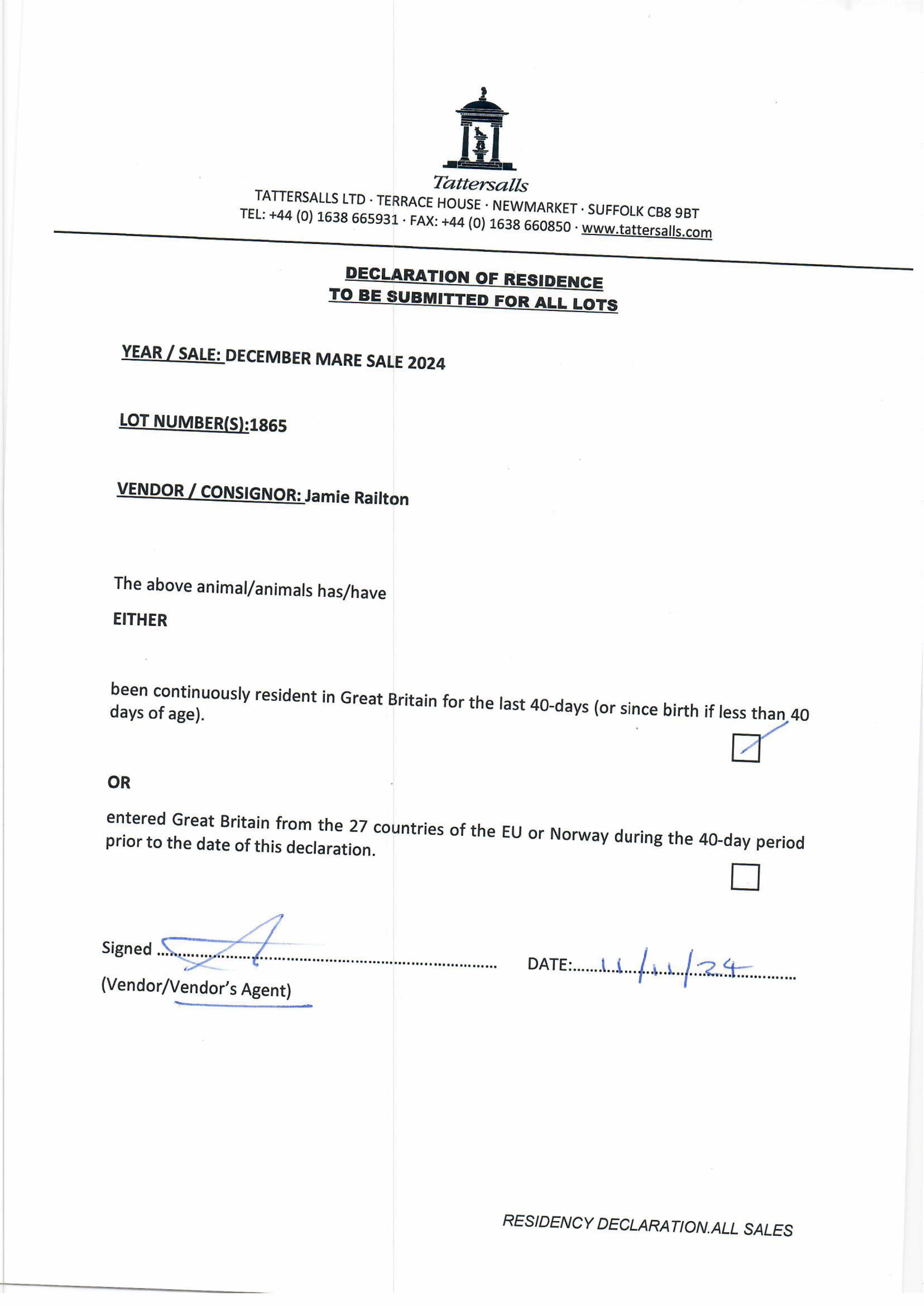 October Yearling Sale, Book 3 2025 lot 1695 C. by Kameko (USA) 2024, Jamie Railton (Agent)=>Vendor 1,000 gns