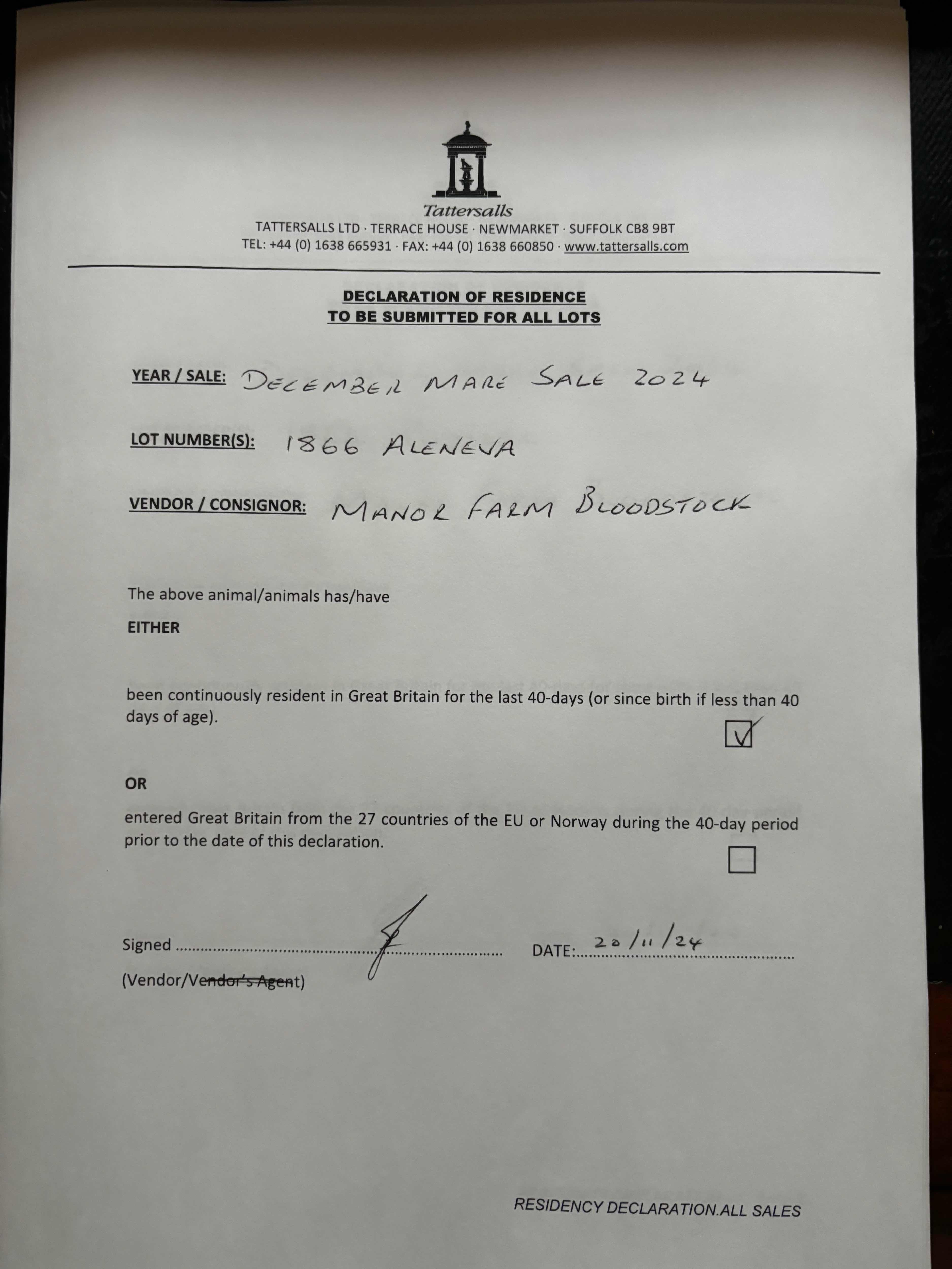 Consignor: Jamie Railton (Agent)