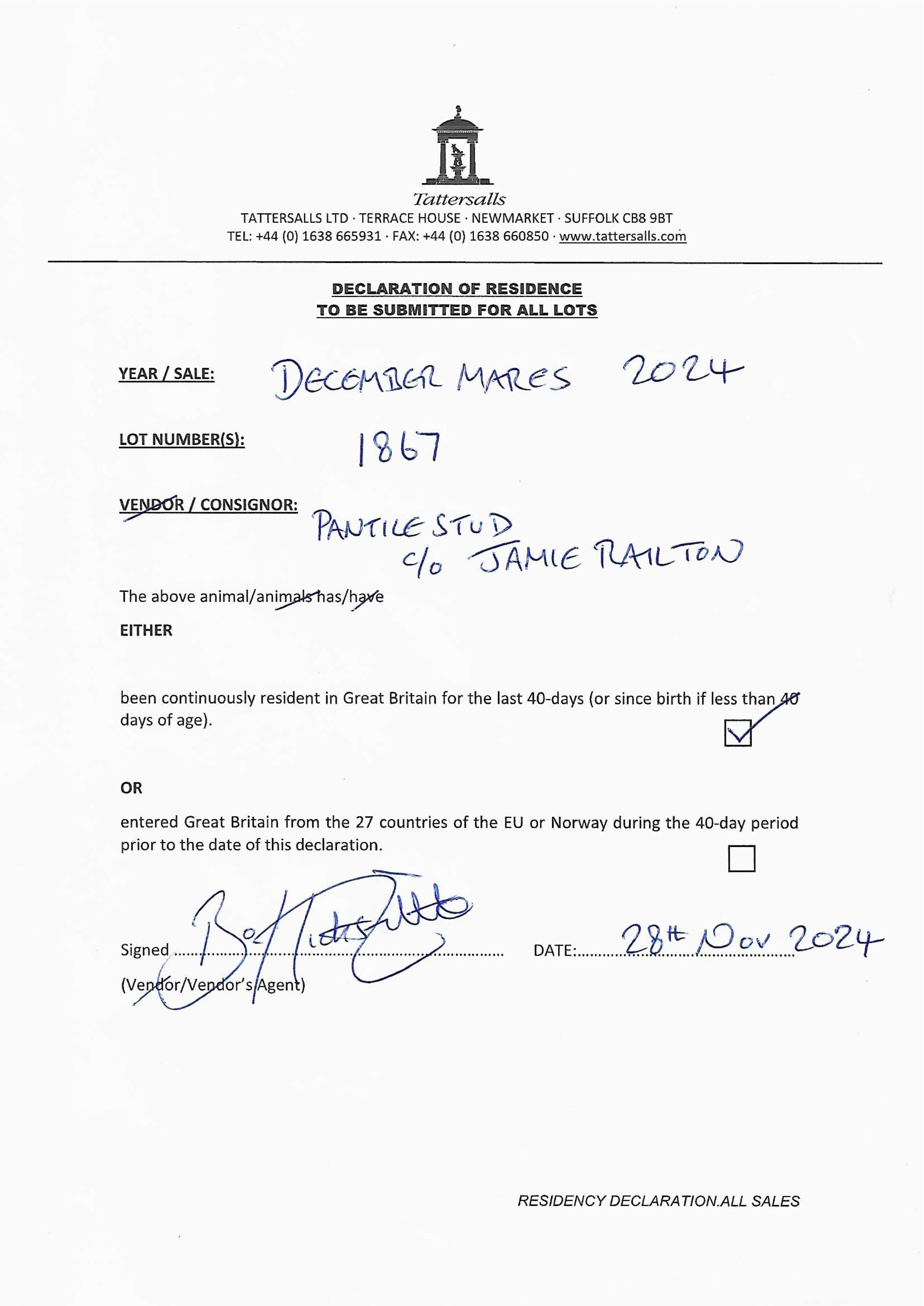 Consignor: Jamie Railton (Agent)