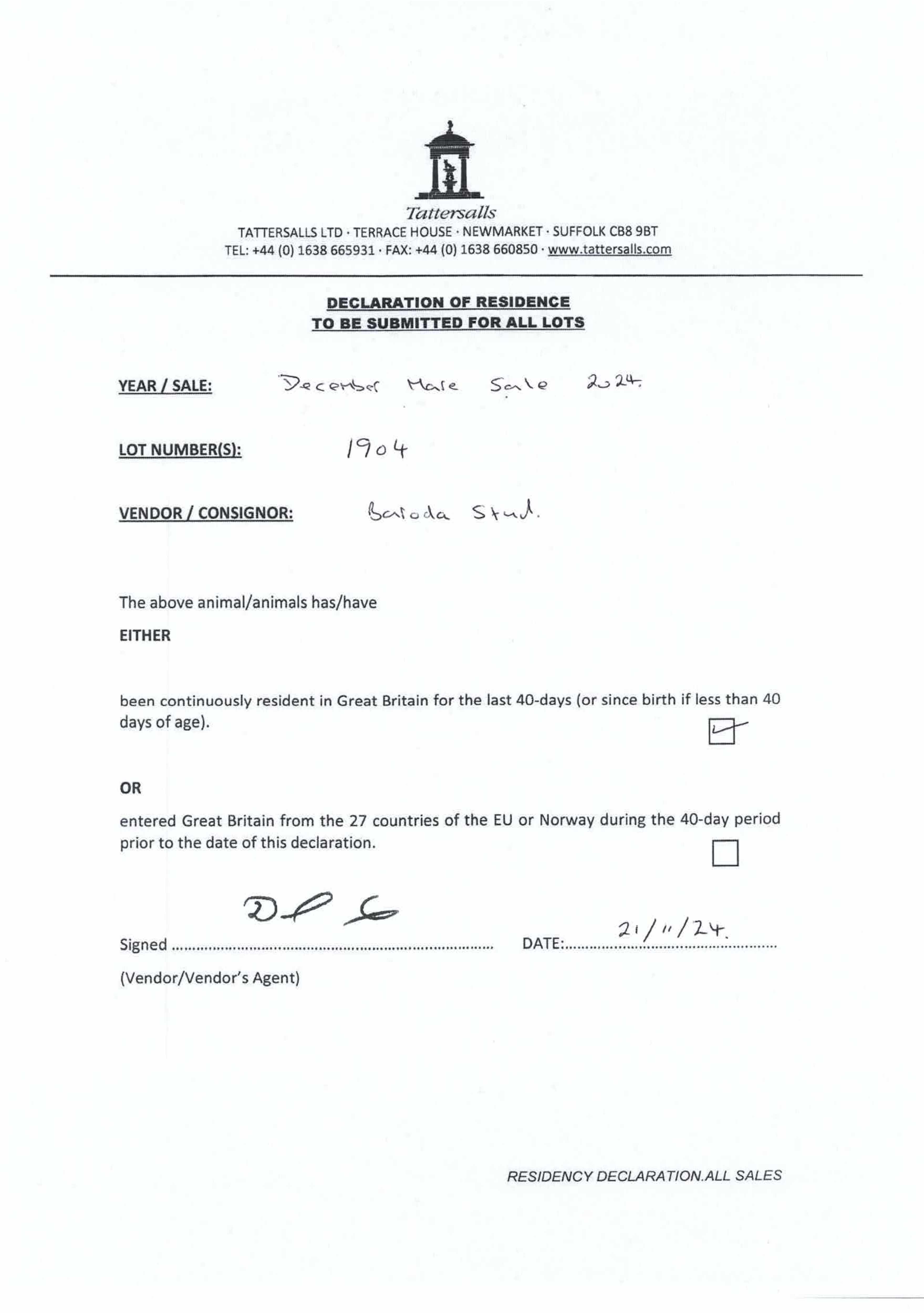 December Mare Sale 2023 lot 2016, Godolphin=>Little Down Bloodstock 31,000 gns